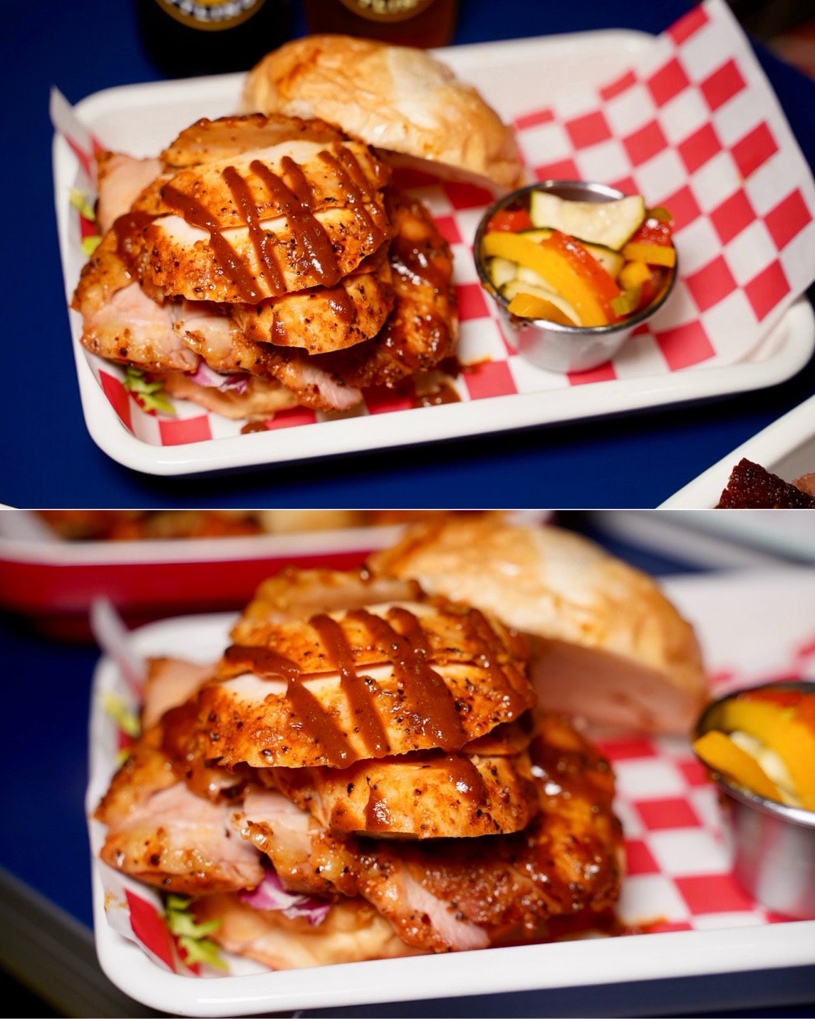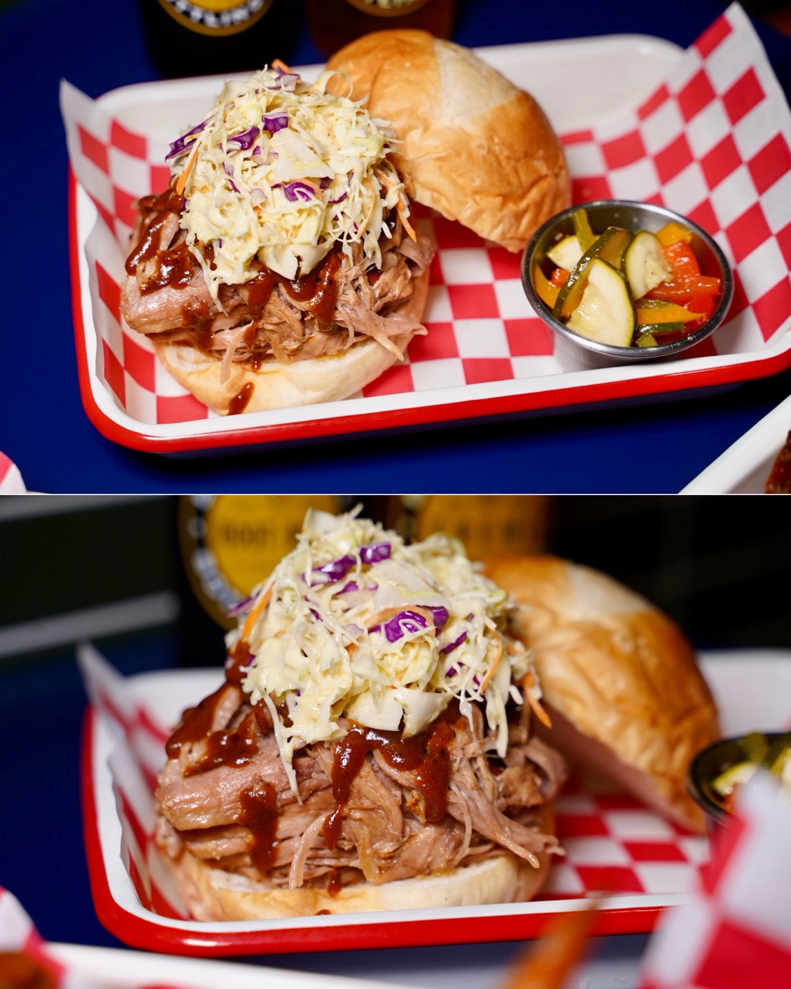 我個人私心超推薦這個經典「慢烤手撕豬肉三明治」,豬肉肥瘦適中,一絲絲加上鮮嫩多汁的口感,再淋上酸甜的靈魂BBQ醬,鹹甜交織,真的非常開胃好吃!
