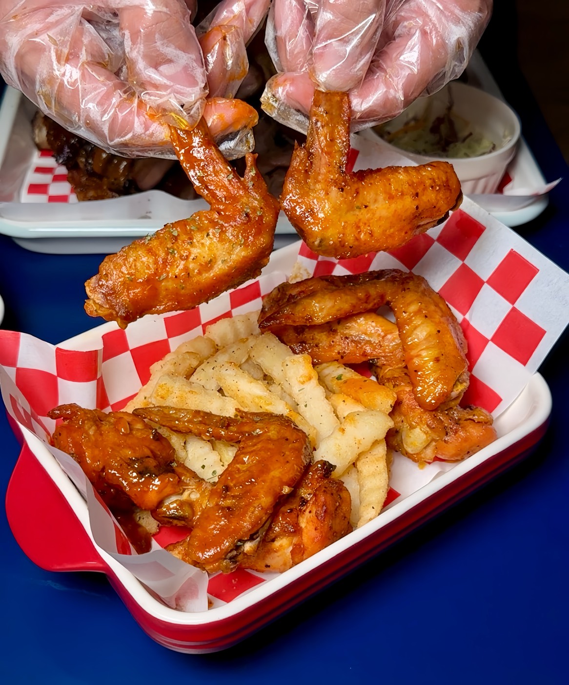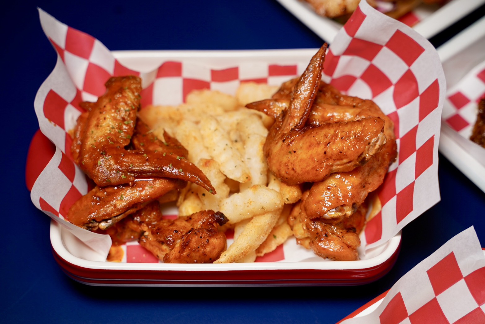 「雞翅拼盤」一盤就能吃到「煙燻辣味楓糖」和「水牛城酸辣」兩種口味,不用糾結要選哪個,全部都給你!旁邊還附薯條,整個超級涮嘴~