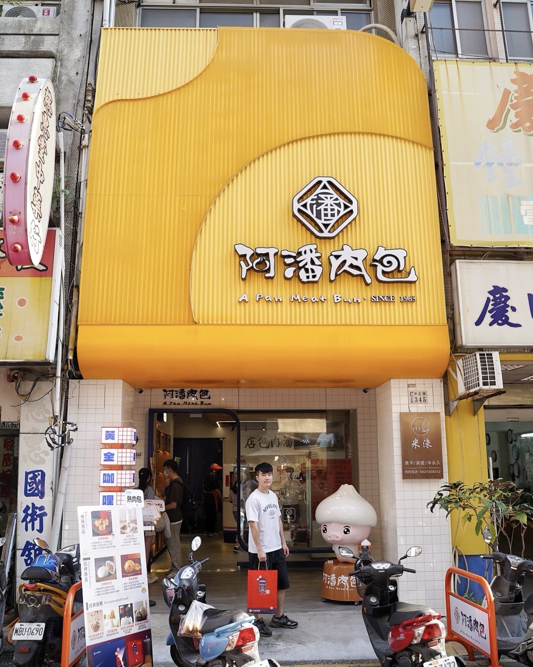 「阿潘肉包店」現在嘉義有三間分店,總店就在北香湖公園旁邊,這次是來藏在文化路夜市裡的「阿潘肉包|伴手禮-中正店」,就在林聰明沙鍋魚頭那條路上,順路逛嘉義文化路夜市順便來帶伴手禮超方便!「阿潘肉包|伴手禮-民雄店」也即將開幕,想買的各位,也不用跑太遠啦~「阿潘肉包」這家傳奇老店最早創立於1965年,當時還是間賣肉包的麵店,結果肉包賣到嚇嚇叫,才轉型專賣包子饅頭,傳到第三代後,整個品項再升級!現在不只有包子,還有黃金咖哩餃、蛋黃酥、鳳梨酥等等伴手禮,只要中秋禮一到,店前面真的是天天排隊,人氣誇張到不行!