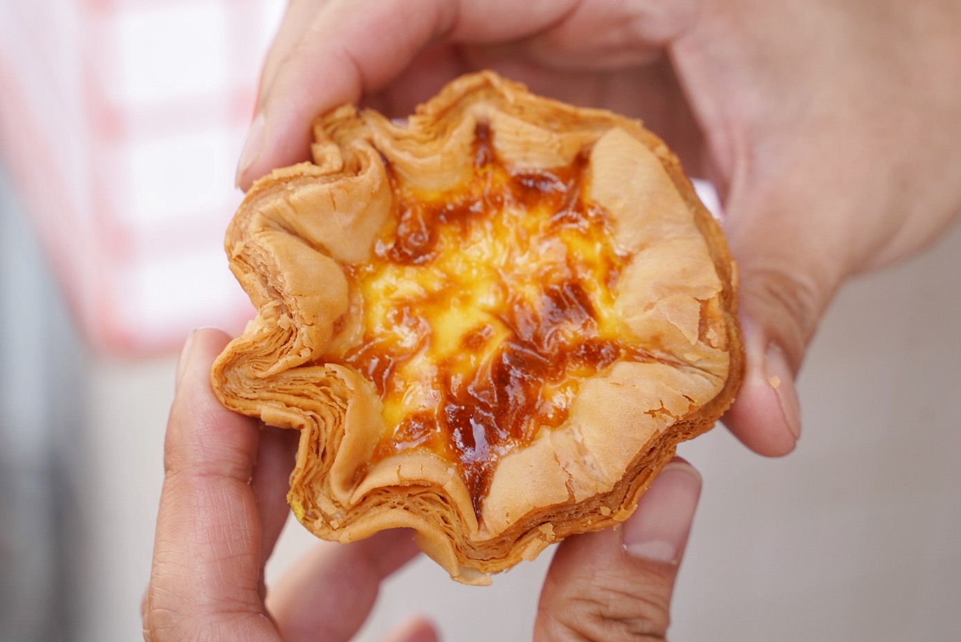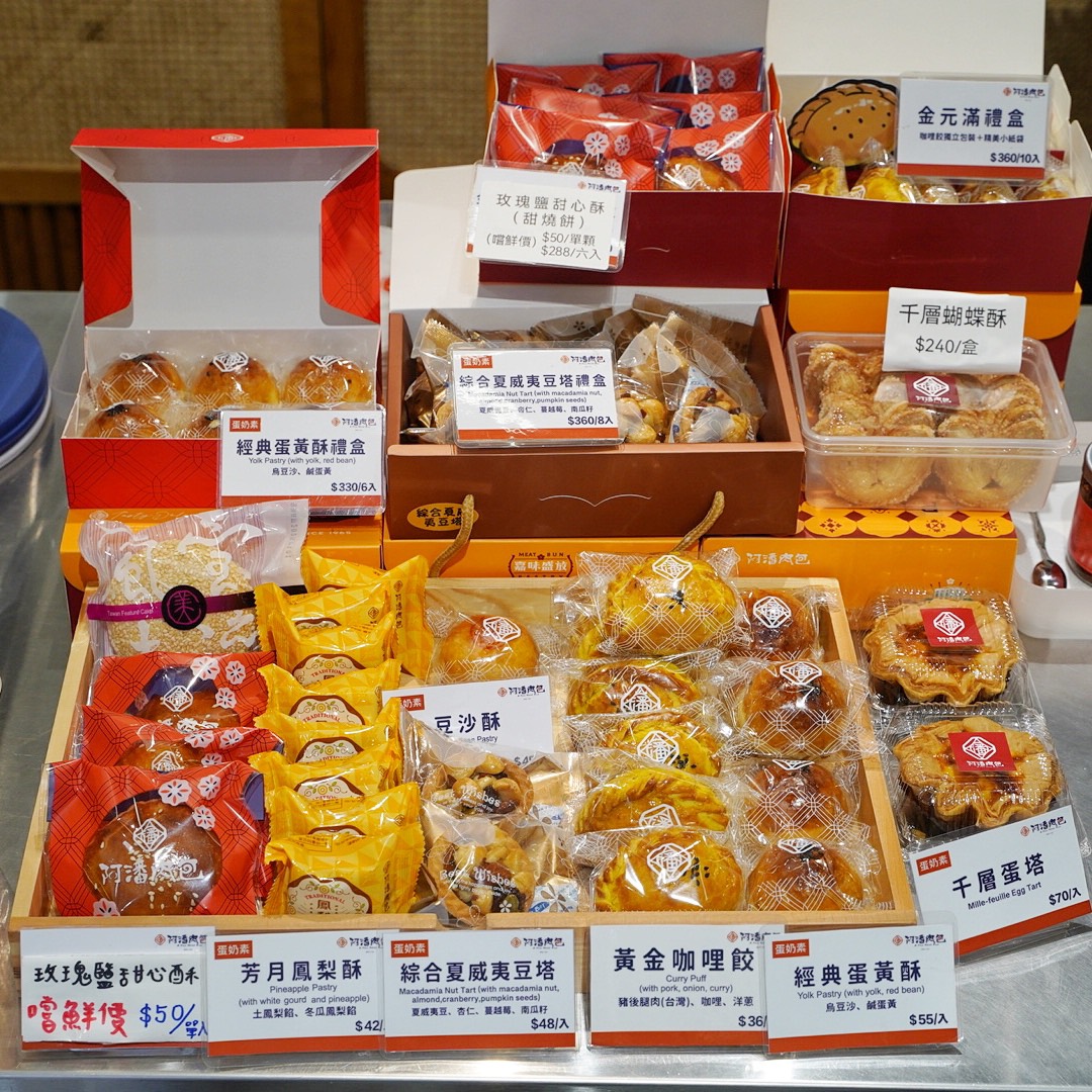 「阿潘肉包店」不只有賣傳統點心,也有跟上流行推出「千層蛋塔」,外層花邊酥皮一層層堆疊,很推薦回家烤箱加熱,一口咬下,內餡濃郁滑順、蛋香十足,真的好滿足。