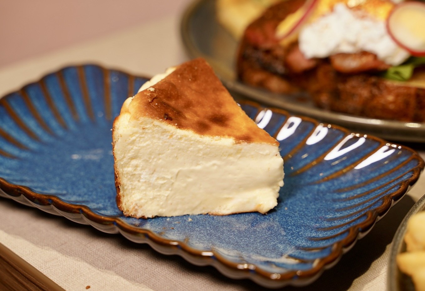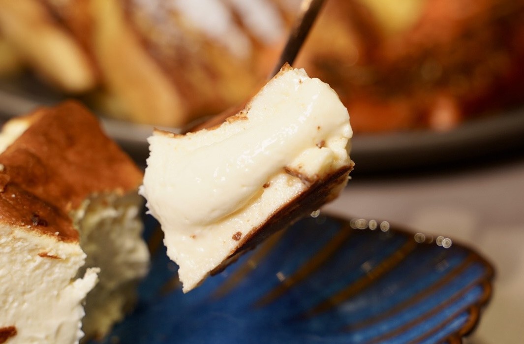 「巴斯克乳酪蛋糕」是那種半熟軟心口感,一口咬下超綿密,帶著微微焦香,香濃卻完全不會膩口。