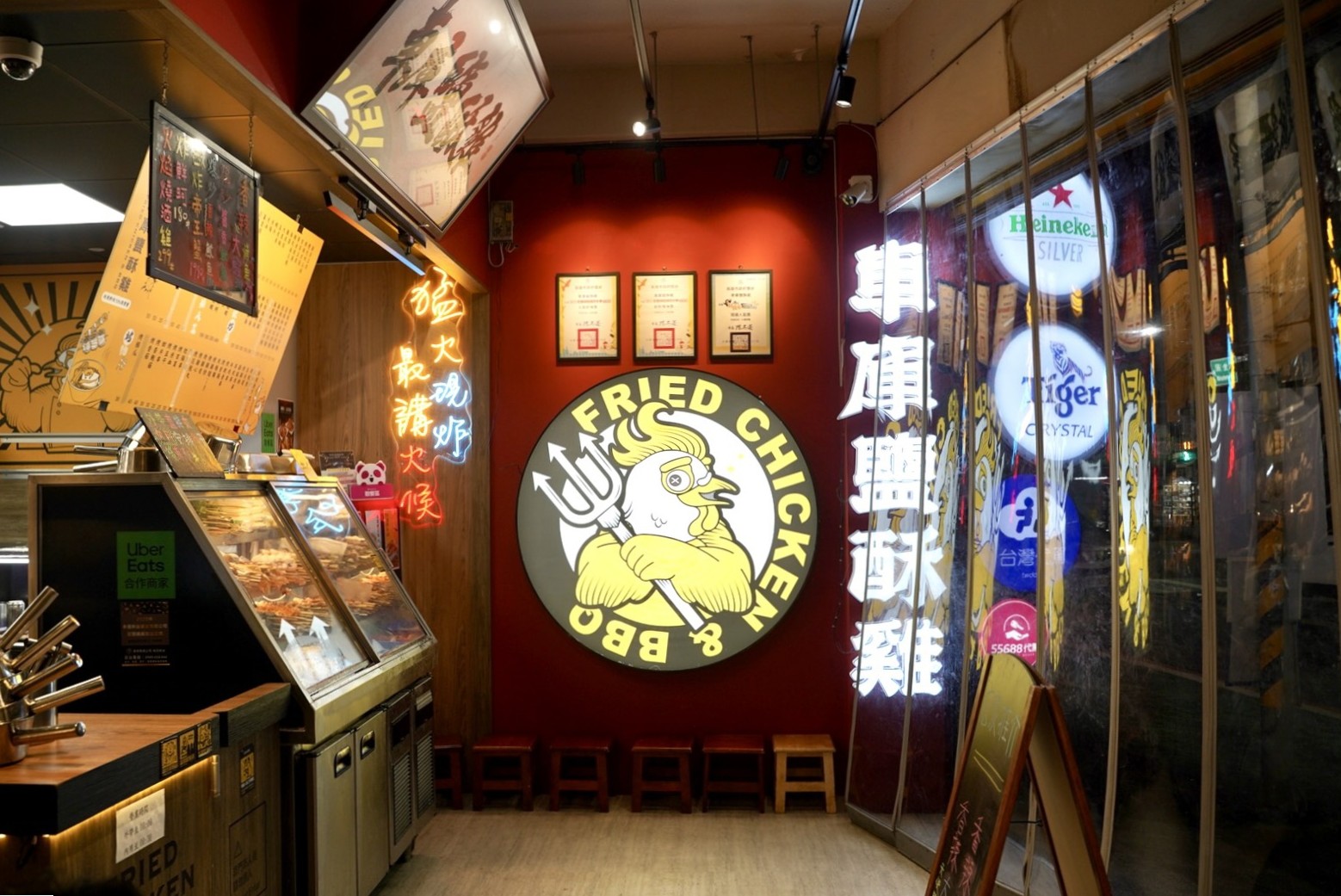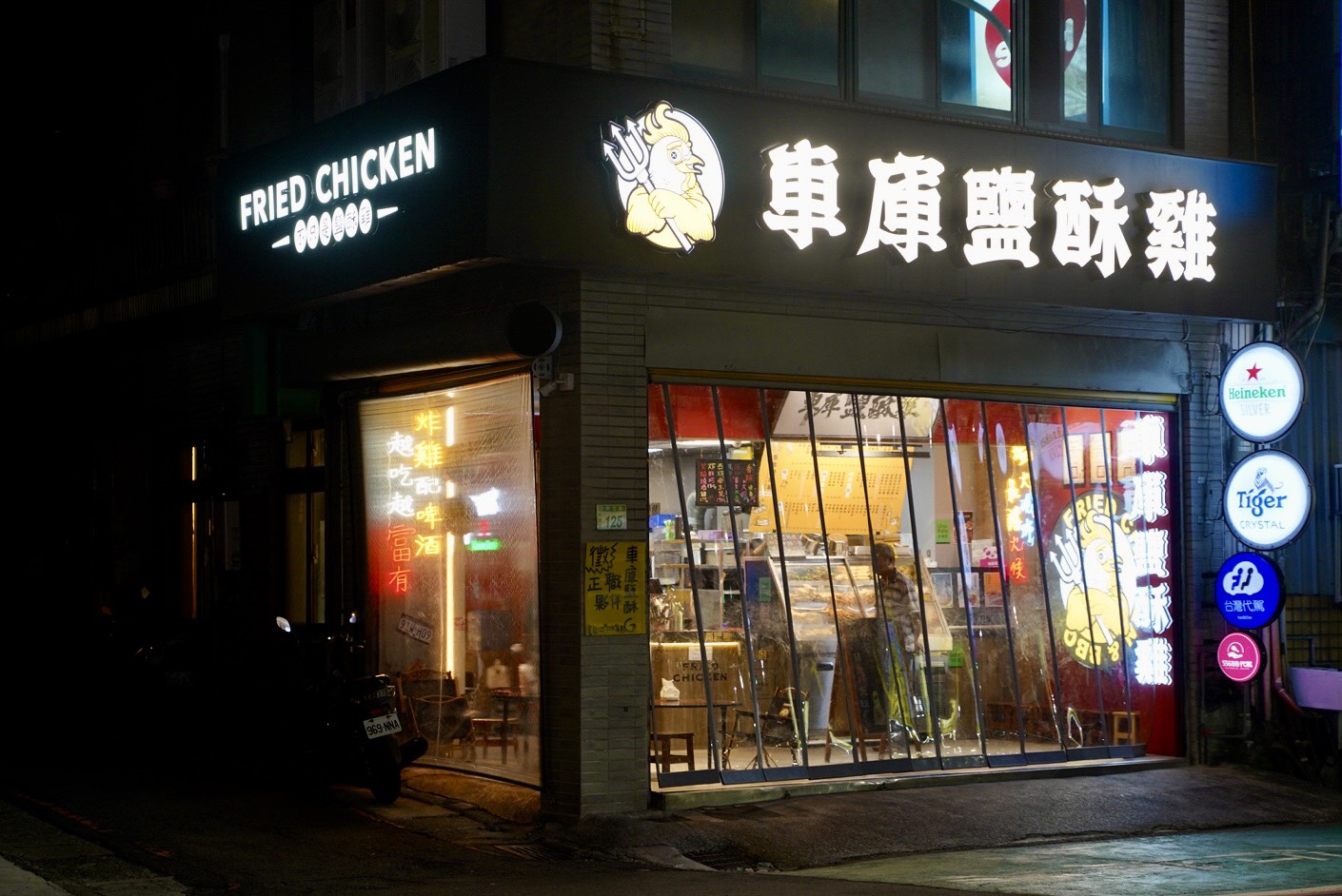 想在桃園火車站附近找到可以內用的鹽酥雞店,真的只有「車庫鹽酥雞」才有,而且夏天來用餐還有冷氣可以免費吹,內用區很有台灣熱炒店的味道,小小圓桌很適合三五好友圍爐,一口酒、一口炸物,真的是桃園上班族的小確幸。