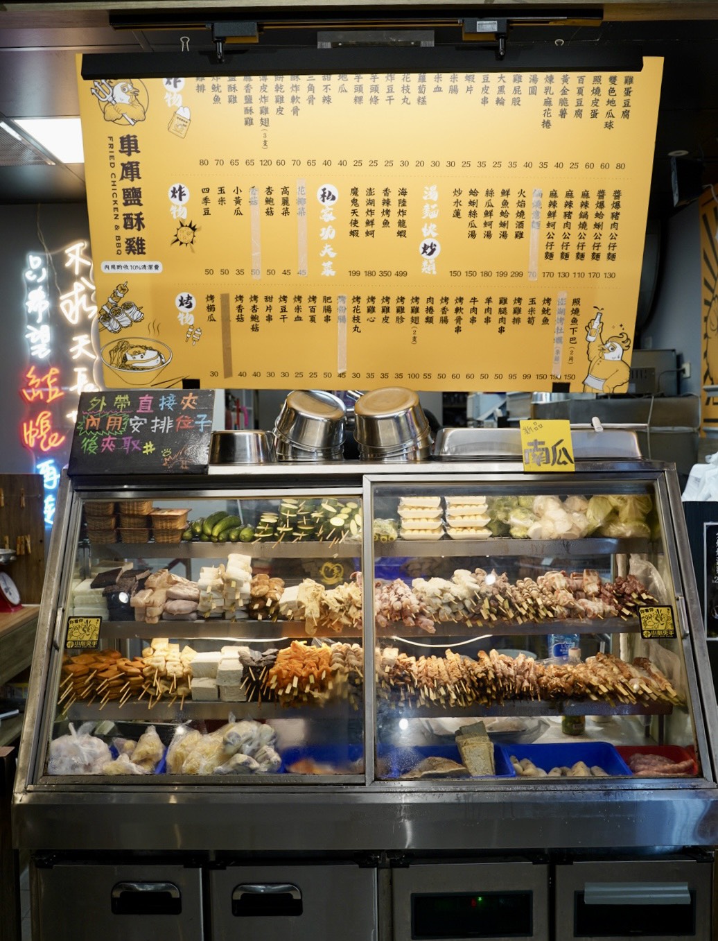 走進店裡就會被那個冰箱櫃給吸引!各種串燒、炸物整整齊齊排列著,想吃什麼自己拿,抬頭一看黑板上價格標示得清清楚楚,不用擔心不知道價錢,另外還有隱藏版料理和季節限定品項,選擇多到讓人選擇障礙發作!