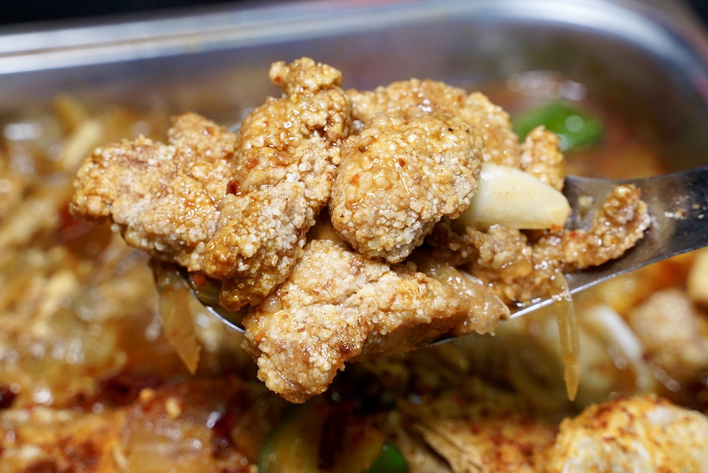 推薦各位一個隱藏版吃法,就是把鹽酥雞丟到「香辣烤鱸魚」裡一起煮!有點像排骨酥的概念,但比排骨酥更好吃,真的有夠香~