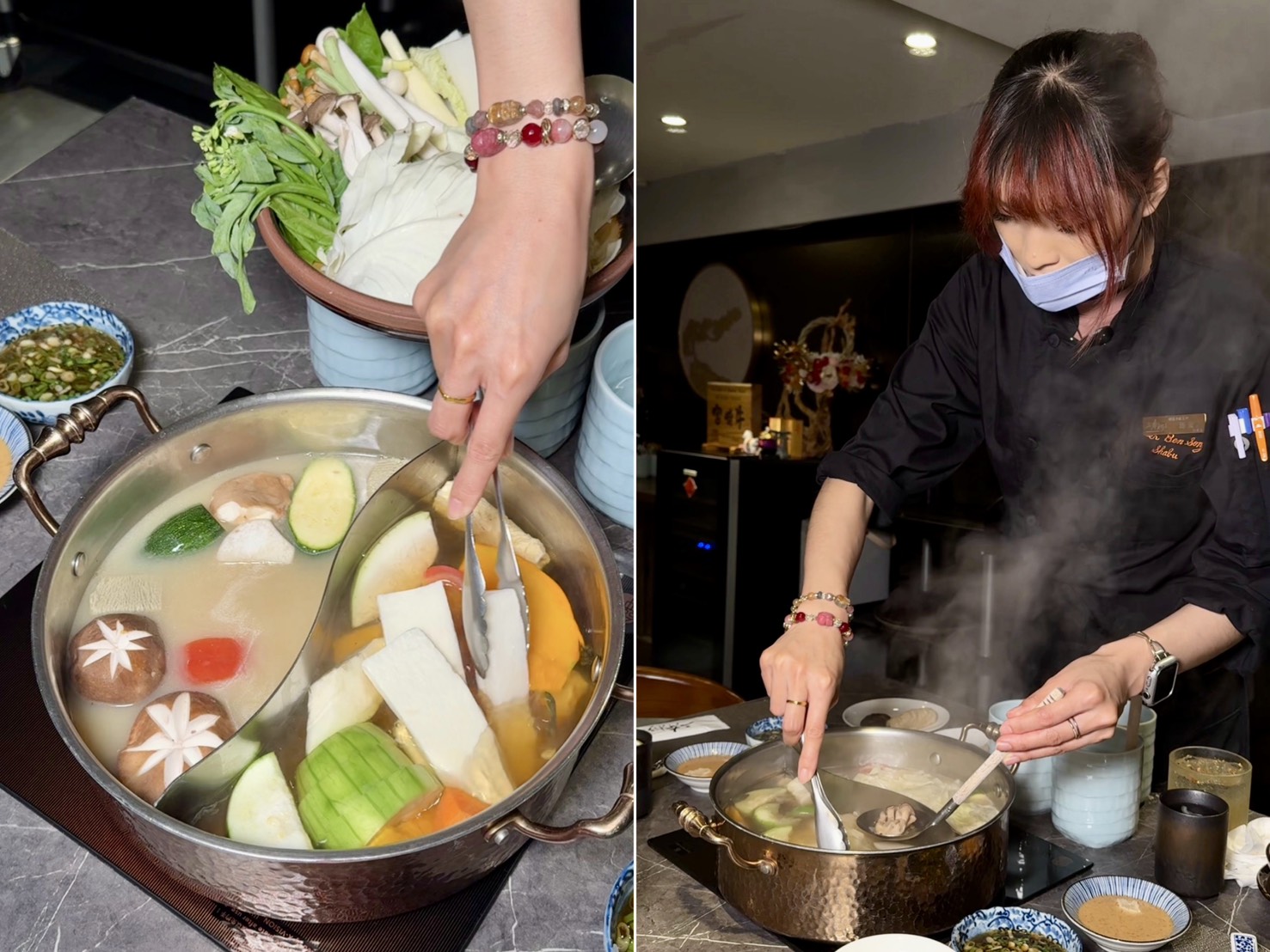 湯底採鴛鴦鍋形式,「日式柴魚玉露湯」絕對是必點招牌!清澈的湯頭竟然是用柴魚和文山包種茶熬出來的,入喉還會回甘。
