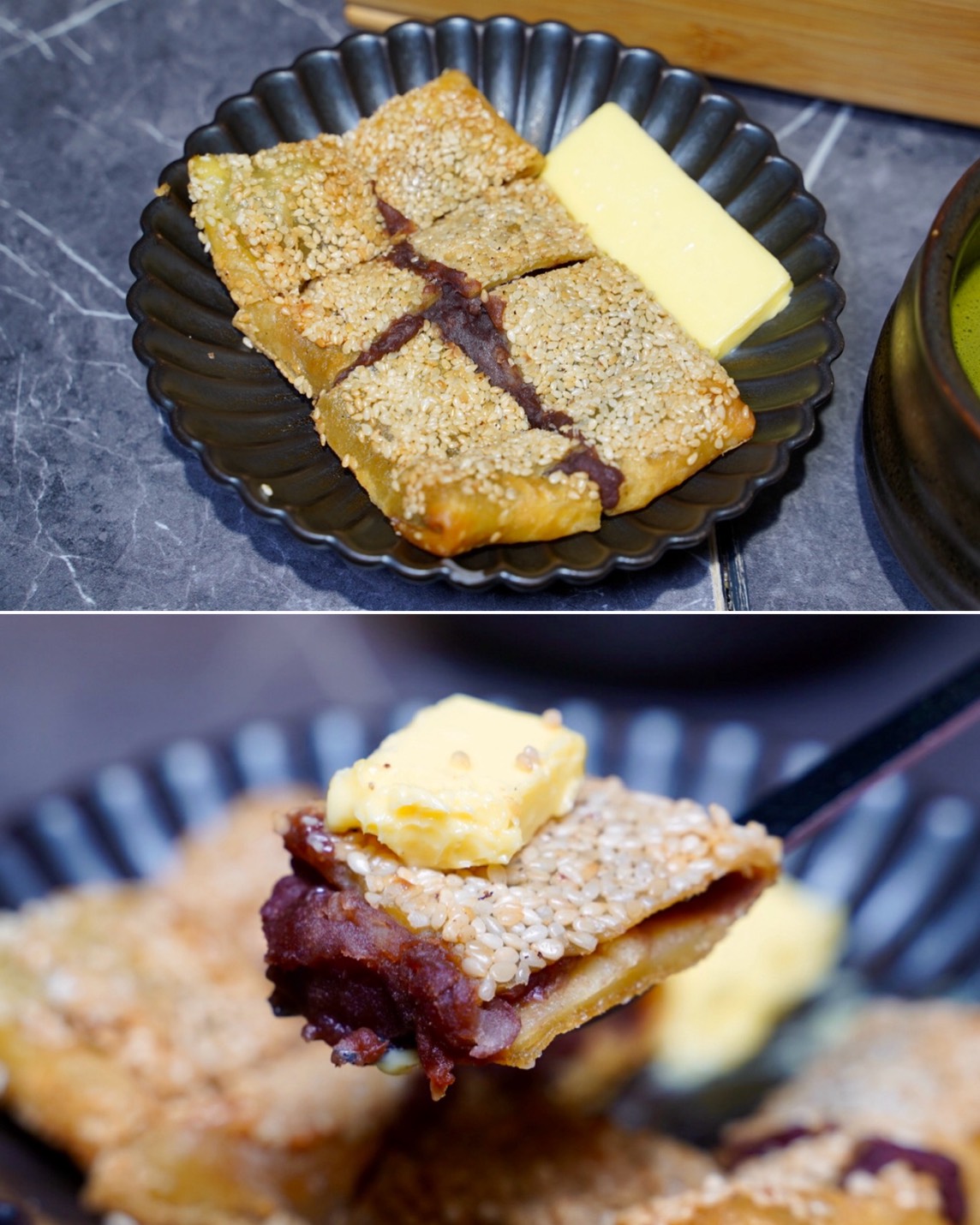 套餐的飯後甜點,絕對是必選這個「紅豆鍋餅」,外皮灑滿白芝麻,咬起來又酥又香,內餡是萬丹紅豆的自然香甜,重點是完全不膩口!雖然當天胃已經快撐爆了,還是忍不住把它全部吃光光。