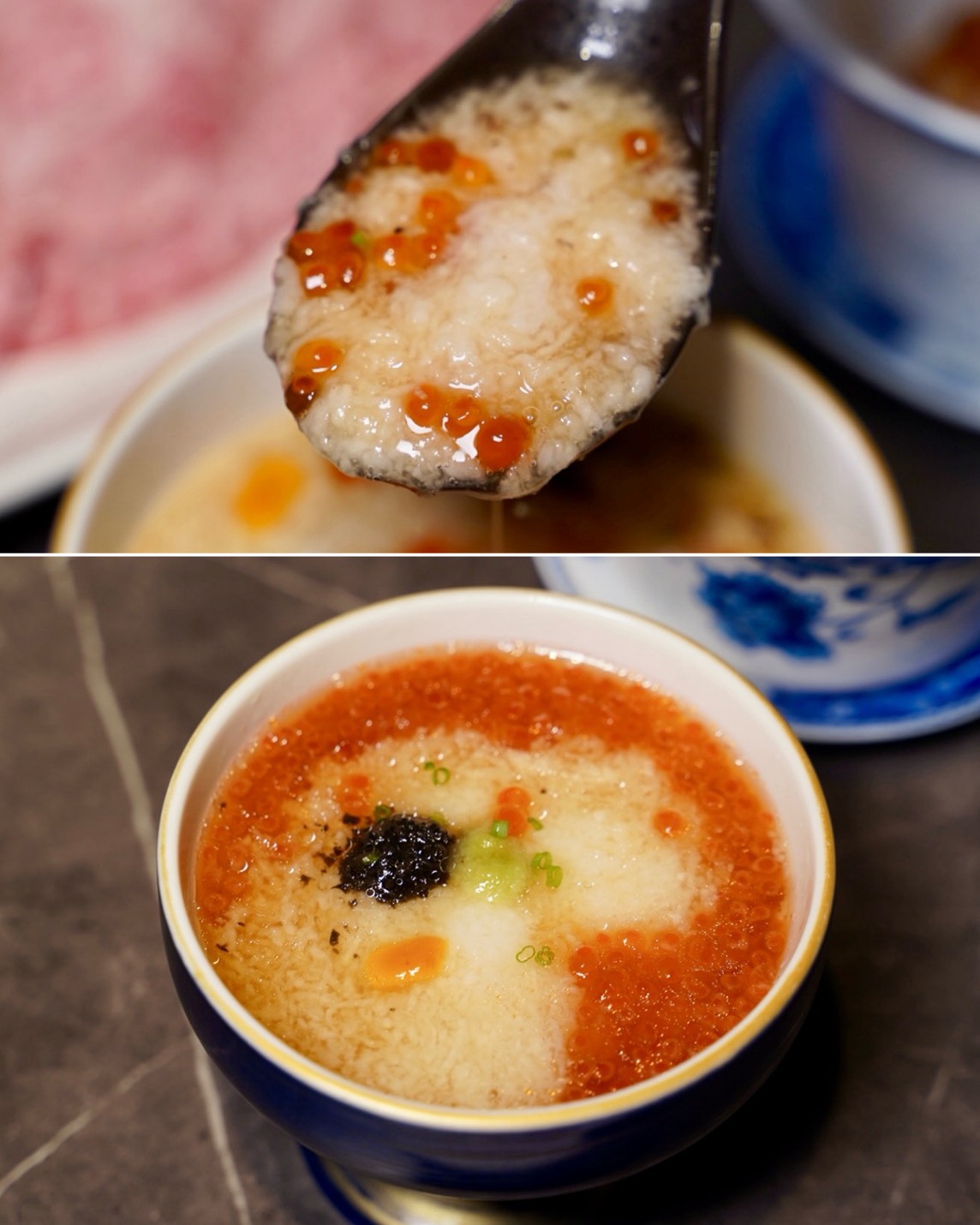 最後把涮過和牛、煮過花咲蟹的精華湯底留下來,加入蟹膏、白飯和雞蛋慢慢熬成一鍋粥,那個濃郁海味真的很誇張,吃過絕對讓你念念不忘。