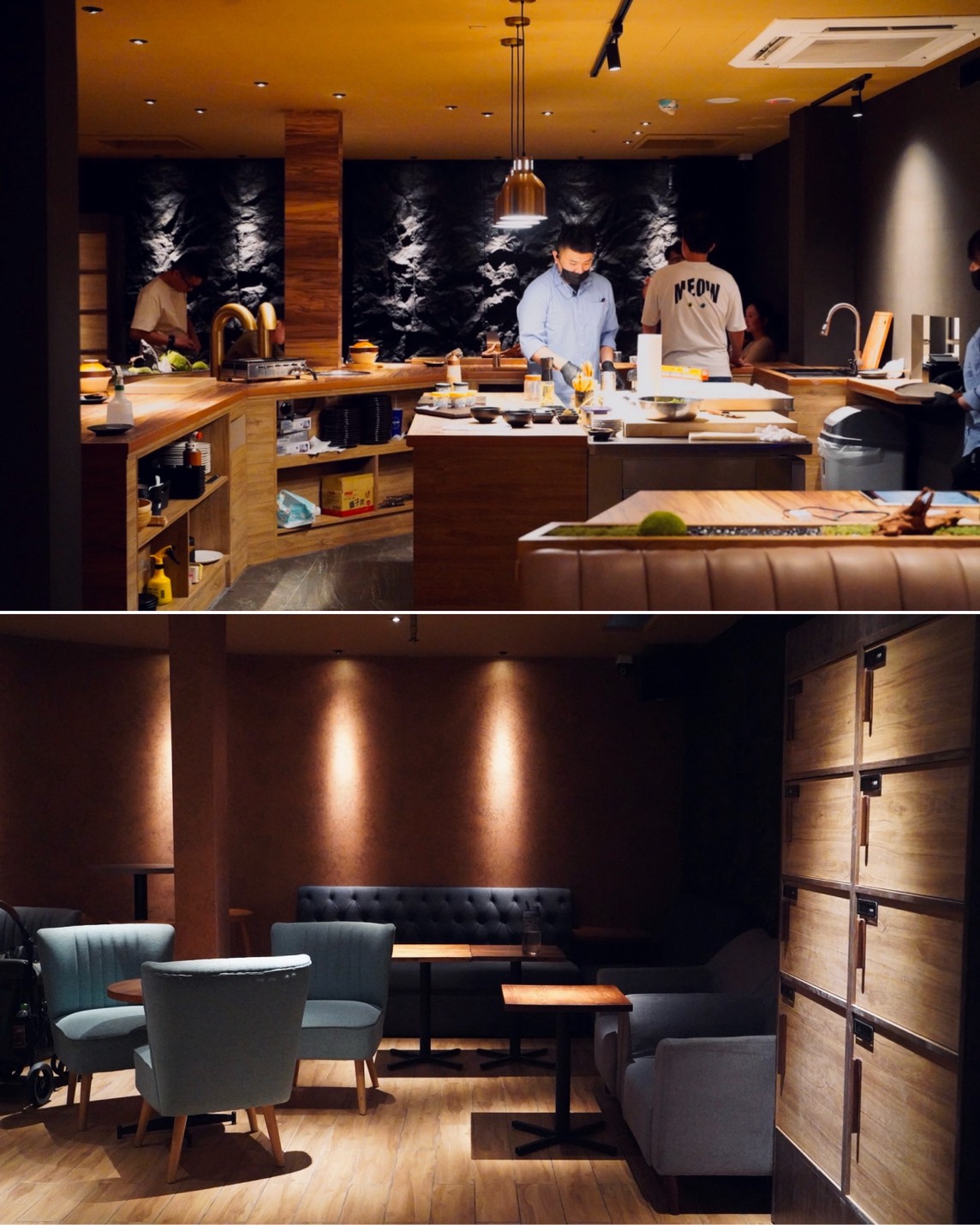 整間店走簡約日式侘寂風,氛圍靜謐超有質感,全場只有六桌,座位雖不多,但完全不擁擠,還有中島開放式廚房,可以看著師傅現場料理超療癒!就像在家裡用餐一樣~
