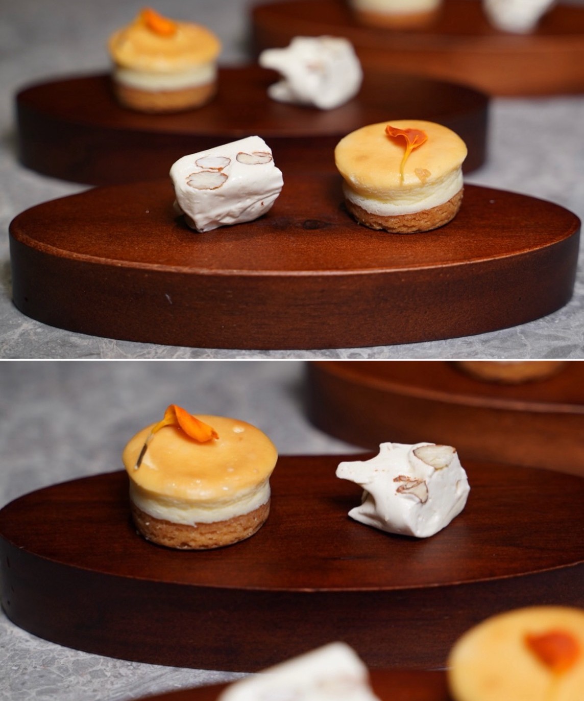 另一道是與台中知名「米提爾」聯名推出的甜點,牛軋糖及乳酪酥,整體甜度剛剛好。
