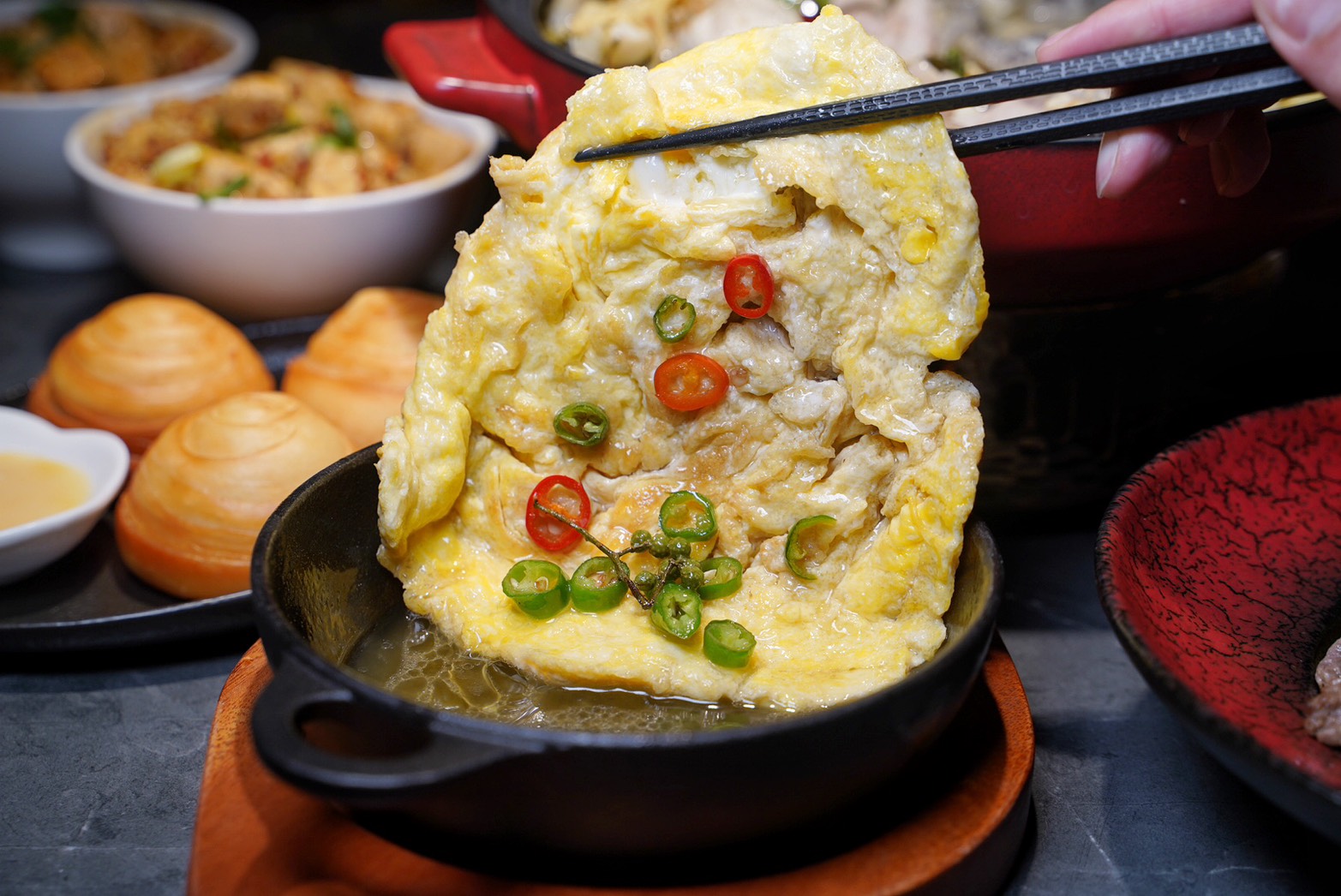 熱菜很推薦選這道「花椒鐵鍋蛋」,用平鐵鍋裝的金黃色澤烘蛋,口感非常軟嫩,吸飽特調椒麻醬汁,口味比其他川菜更清爽一些,份量也很有誠意。