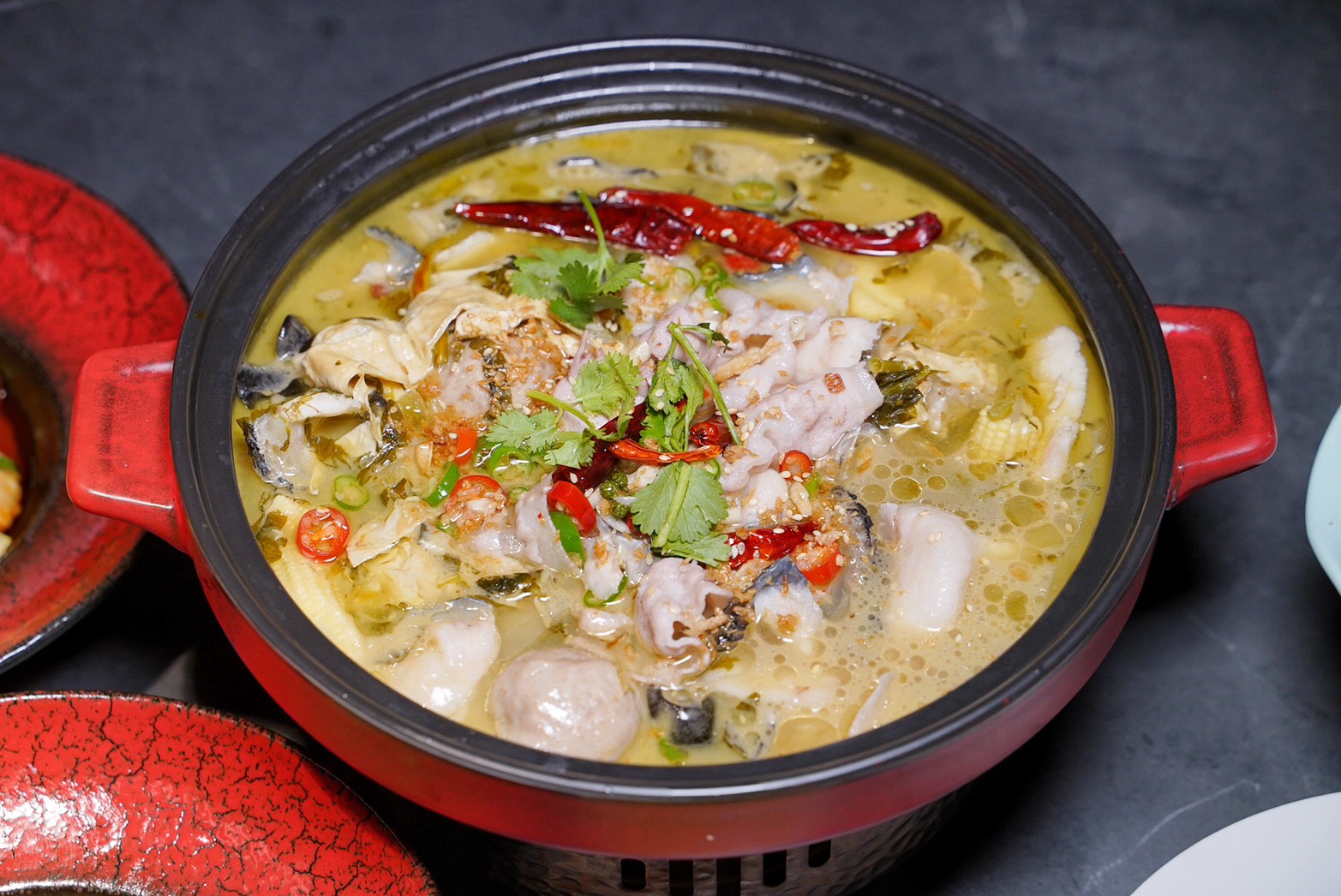 近期最夯的酸菜魚就是這間「江魚美酸菜魚」,是台中知名「眺高 STAY WITH MOUNTAIN」景觀餐廳旗下新作!「江魚美酸菜魚」以紅黑色系中式輕奢感為裝潢,時尚到像來到一間高級摩登餐廳。提供2-4人份套餐,酸菜魚、川菜、甜點及特調飲料一次滿足~而且酸菜魚麻度、辣度都能客製化調整,魚骨熬煮的湯底超級驚豔,還帶有膠質感,重點是不會油膩感,整體川菜選擇也不少~不得不說,「江魚美酸菜魚」飯後甜點表現也很優秀,尤其是「黑糖燉奶」,說有多嫩就有多嫩,我可以為了它再來!整體不論是裝潢、用餐氛圍、餐點都很滿意,真的超適合家庭聚餐,而且步行5分鐘就能到達勤美,根本是台中情侶約會新選擇!