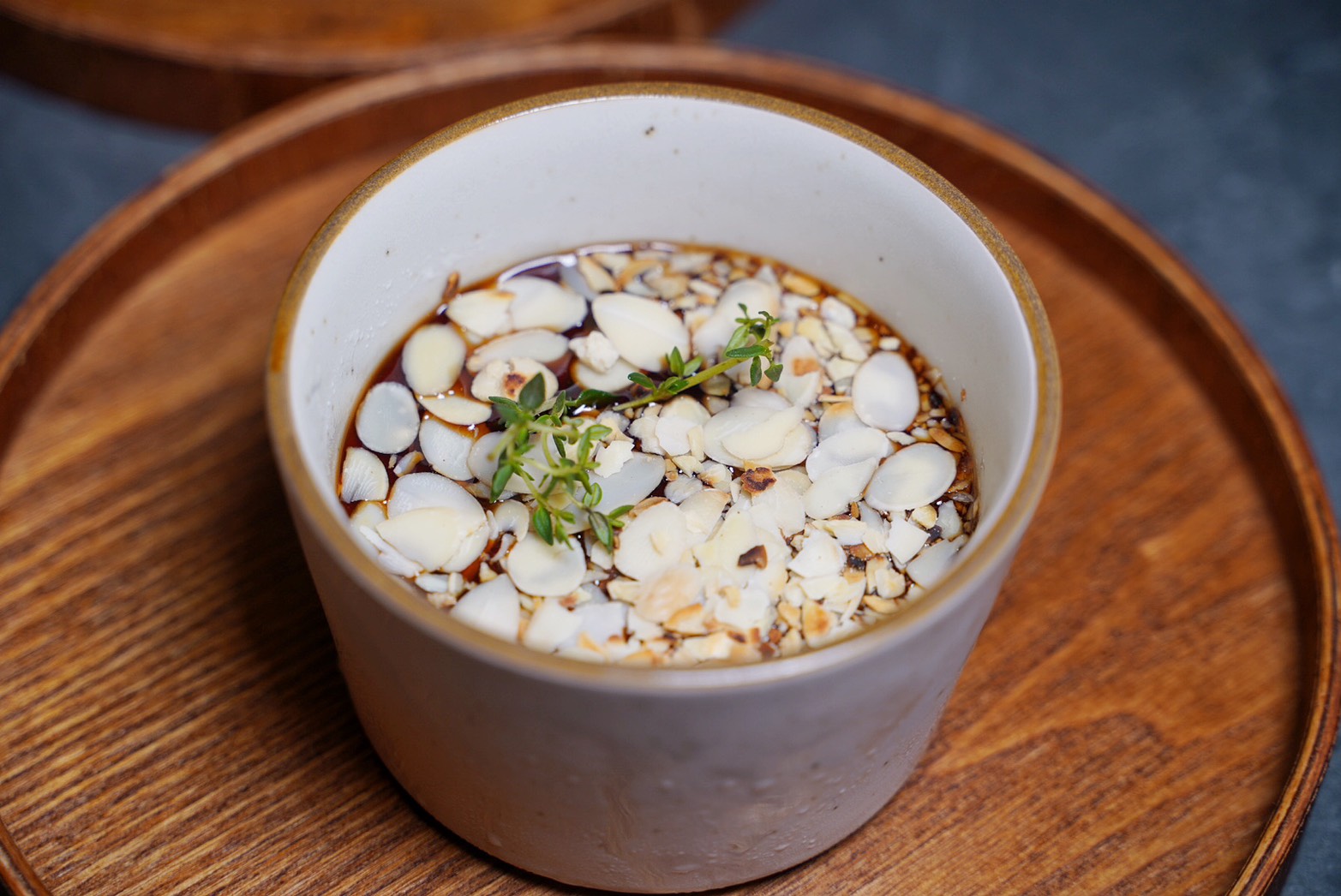 不得不說飯後甜點表現也很優秀!尤其是「黑糖燉奶」,說有多嫩就有多嫩,淋上手炒黑糖醬,味道更香甜,再加上脆脆的杏仁片,真的好吃到不行,為了這個甜點下次還要來「江魚美 酸菜魚」。