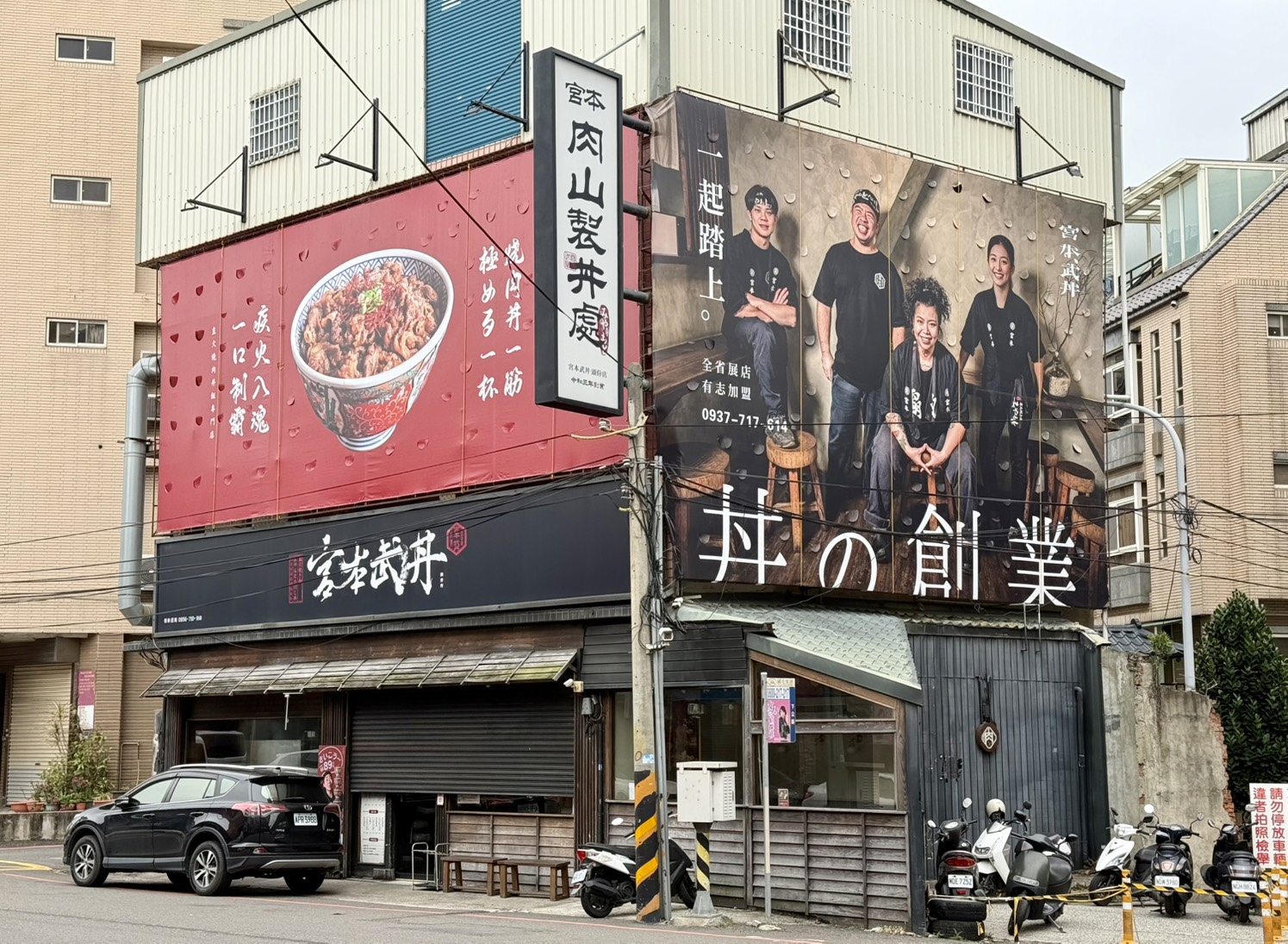 「宮本武丼頭份中華店」位在頭份下公園附近,斗大的水墨畫風武士招牌,走過、路過不易錯過。