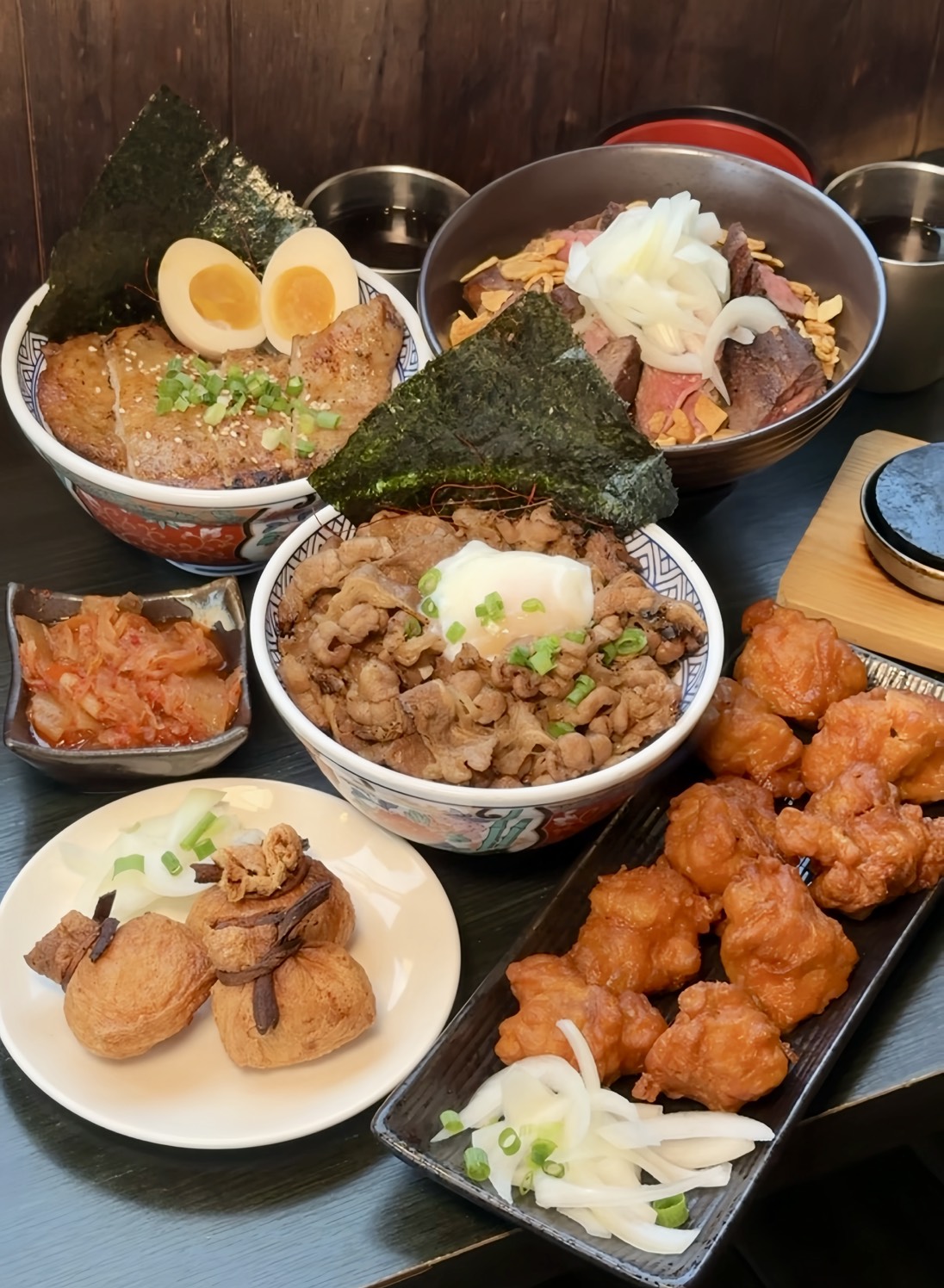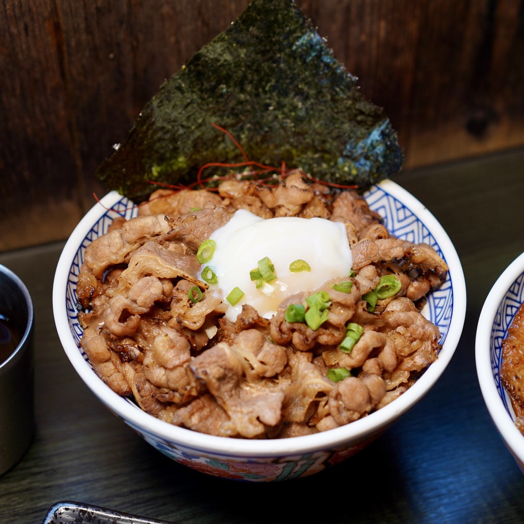 牛肉片堆成肉山的「肉肉野牛丼」也很誘人耶!記得一定要加顆溫泉蛋,金黃蛋液緩緩流下,把帶著炙燒香氣的肉片包裹住,每一口都是極致幸福!底下的白飯更是吸飽了滿滿肉汁及燒肉醬,根本是白飯小偷!