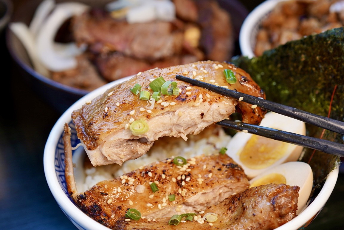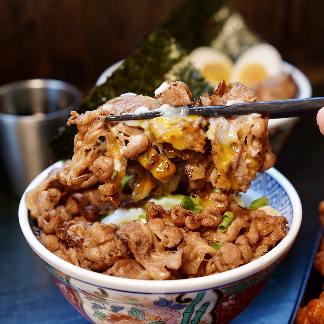 頭份最硬派的日式丼飯就是這間「宮本武丼|直火燒肉丼|苗栗頭份店」,看著主廚拿著巨型噴槍炙燒,火光四射的場景根本就是一場火焰秀,堆出一座座肉山丼飯,根本是肉食控的天堂!極上大勢牛排丼還附加熱石,可自行調整熟度超方便~另外也很推薦柳生火烤雞腿丼,雞肉真的嫩到不行,宮本武丼苗栗頭份店內用還有免費雞湯、霜淇淋、紅茶,絕對讓你吃飽喝足滿足離開~
