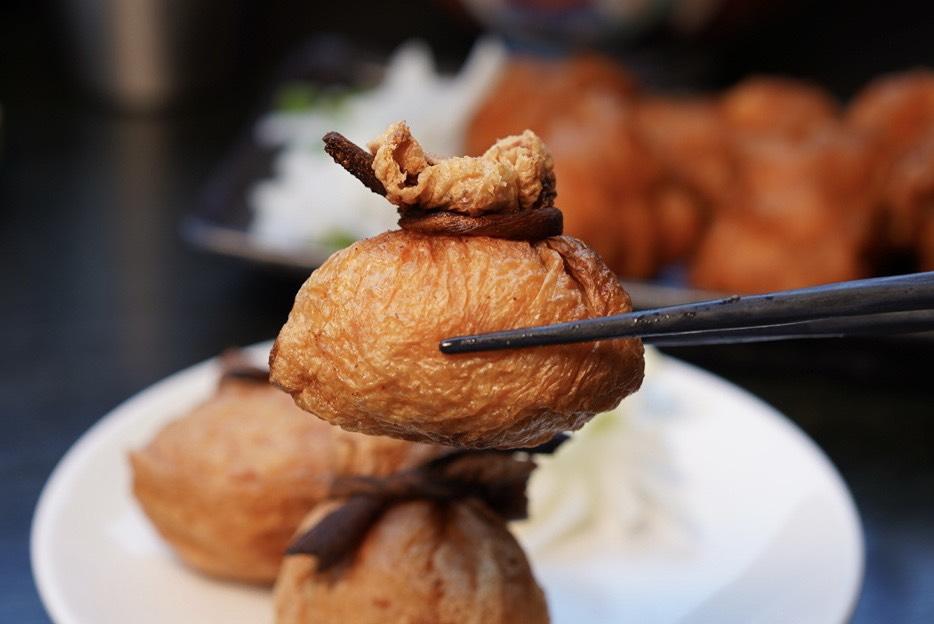 宮本武丼的「火之卷魚卵福袋」竟然是拿去炸的,咬下去會有逼逼啵啵的魚卵口感,超特別~