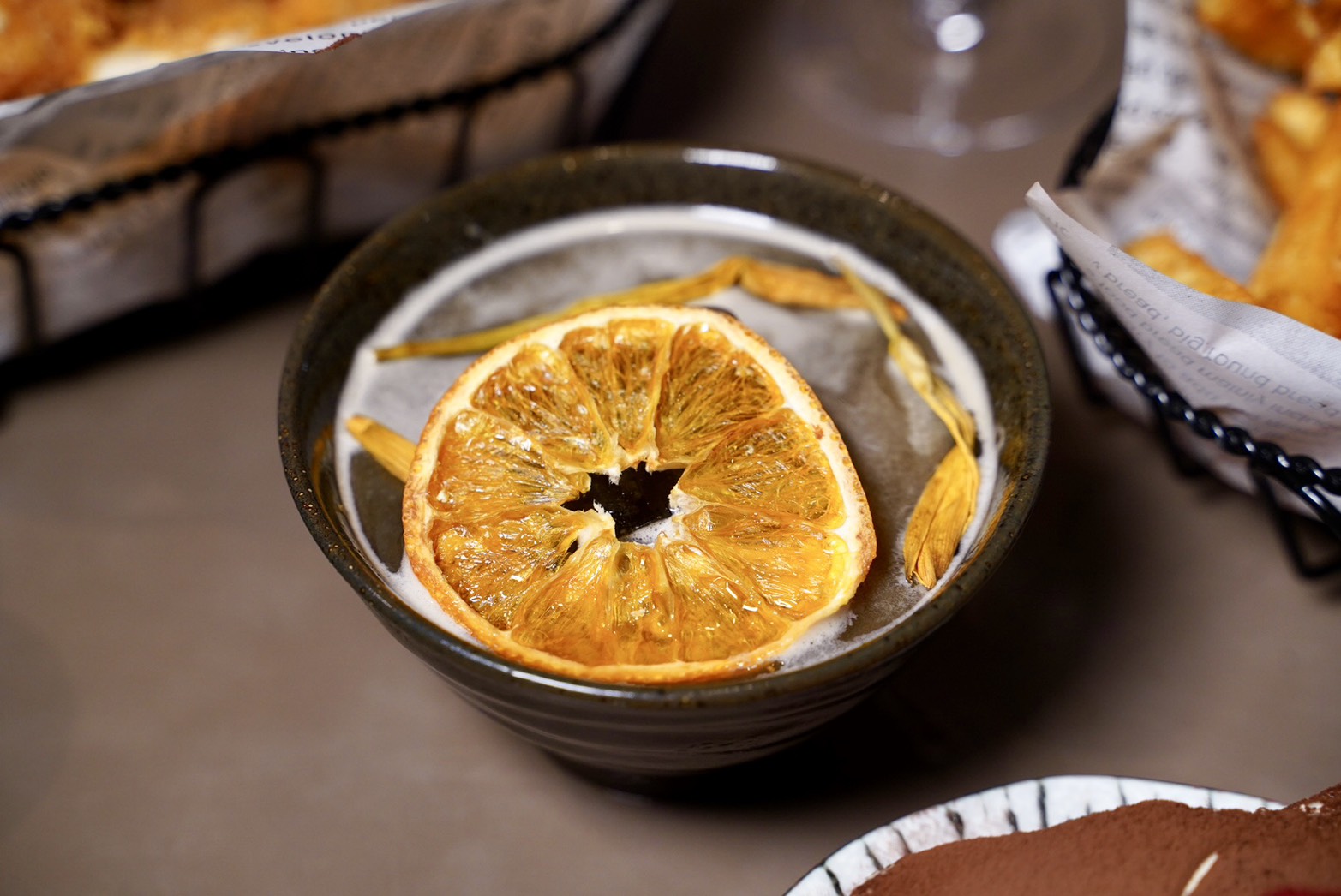 調酒還有超特別的台灣小吃風味,這杯「客家金桔雞」光聽名字就有夠ㄎ一ㄤ!上頭有柳丁片以及跑錯棚的金針花,喝起來意外順口,有濃郁香甜的柑橘味,尾韻帶點藥草香 很有層次感!