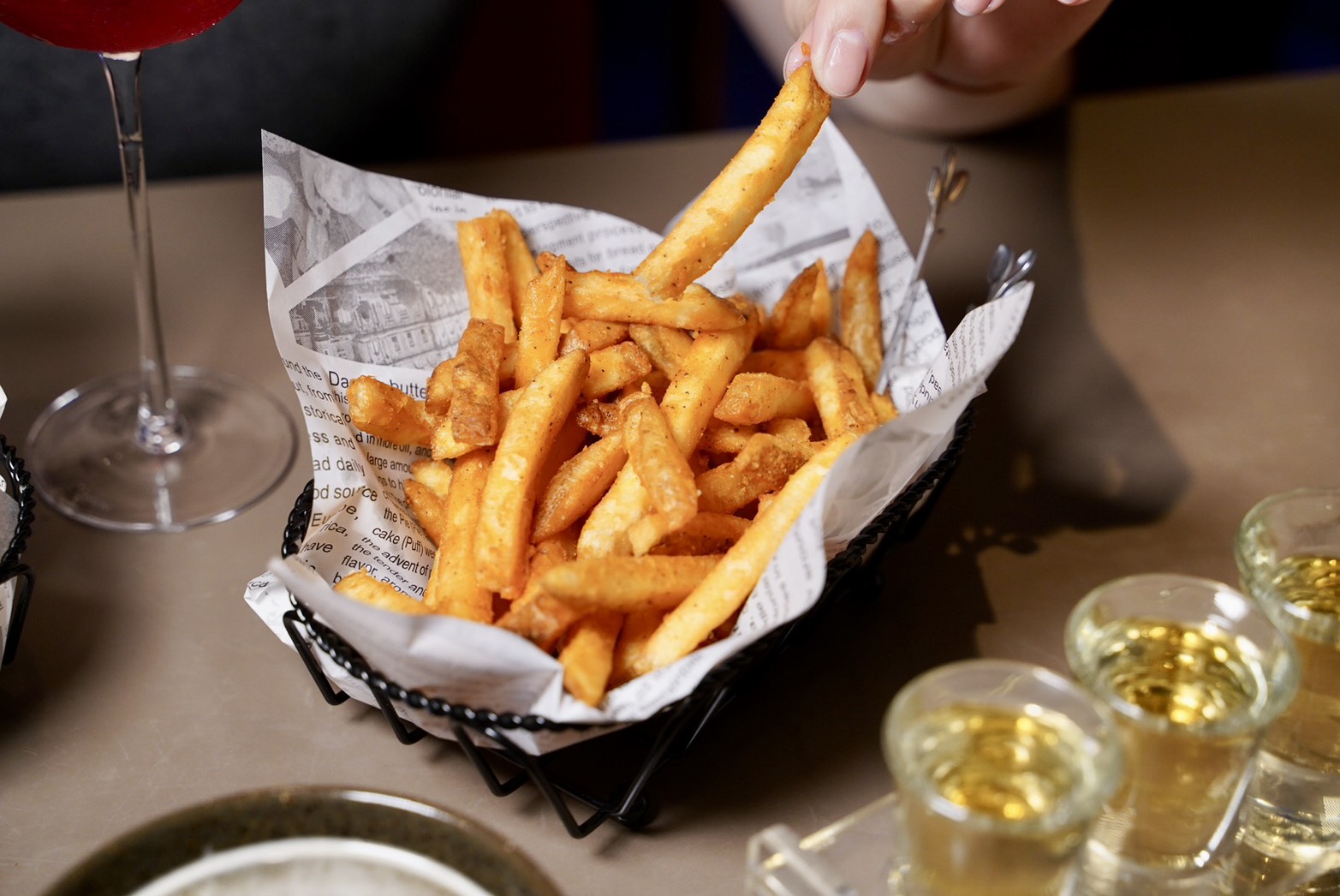 店內也有提供不少下酒菜,當天點的「黃金脆薯」、「檸檬椒鹽雞柳條」也都很好吃,不論口感還是調味都很可以!