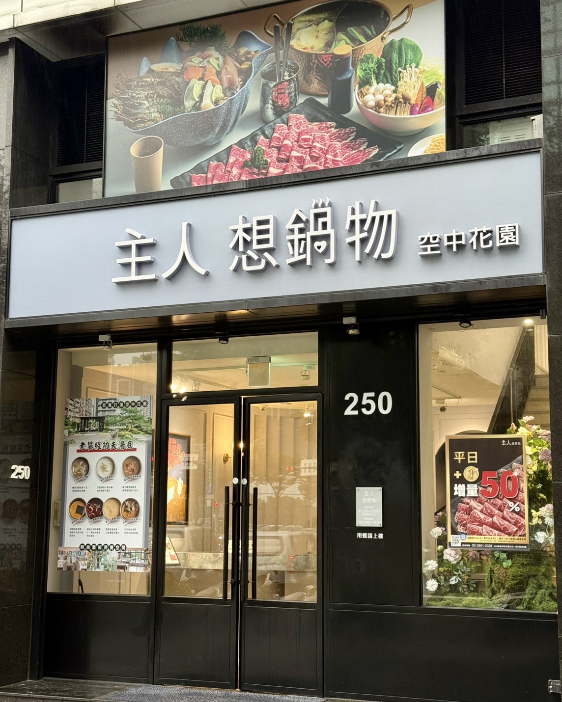 主人想鍋物」隱身在商辦大樓裡面,一樓入口處還佈置得很溫馨,走上二樓才是用餐區,沒想到超級寬敞舒適!最讚的是還有戶外的空中花園,根本是林口市中心裡的隱藏版綠洲餐廳。