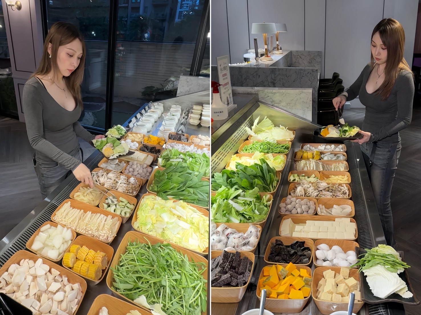 點好餐後先去自助吧區夾菜,有20多種食材,都是新鮮的蔬菜、菇類、豆製品為主,這樣吃起來真的比較沒負擔,而且葉菜類真的都超新鮮,看得出來店家的用心!
