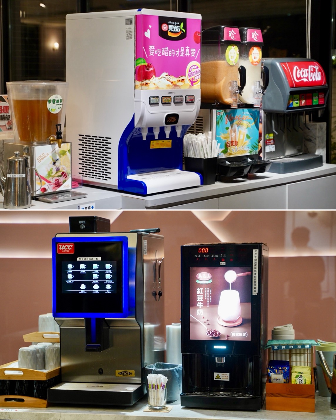 飲料部分也有氣泡飲料機、冰沙機、果醋機、無糖茶等等,還有外面少見的馬玉山飲料機,喝得到紅豆牛奶以及杏仁茶。