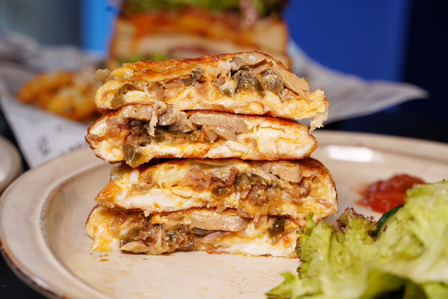 PAI CAFÉ & BRUNCH新推出的「墨西哥日出辣椒蛋捲」也很推薦,跟別人家的蛋捲很不一樣,有加入乳酪絲煎到表皮脆脆的,還有墨西哥辣椒、蘑菇等等餡料,每一口都是香濃帶點微辣,還有蛋捲的濃郁濕潤感,真的是份量大又好吃,推薦必點!