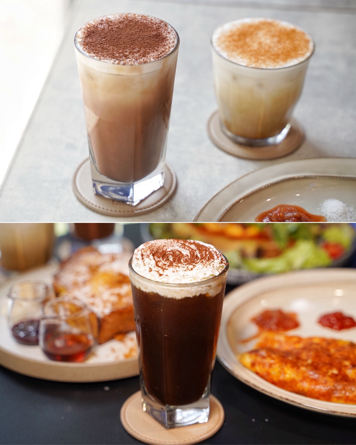 「PAI CAFÉ & BRUNCH」原本就是從烘豆起家的,所以這裡的咖啡隨便點都不會太雷~像是「維也納咖啡」,玫瑰花形狀的鮮奶油優雅浮在咖啡上,撒點可可粉,入口香醇溫潤超療癒~還有這杯「冰摩卡巧克力咖啡」,厚厚一層可可粉覆蓋在冰涼咖啡上,苦甜交織的滋味超幸福~特別推薦這杯「冰蜂蜜肉桂拿鐵」,淡淡蜂蜜香配上肉桂香氣,真的好有層次!
