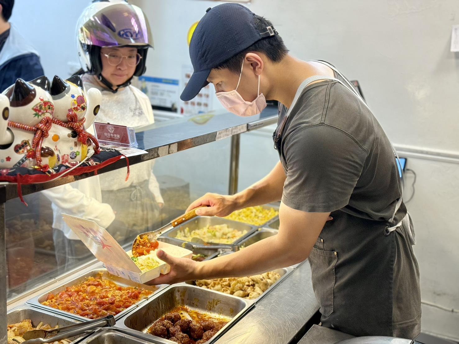 「日日香便當」每日提供7道新鮮現炒配菜,配菜可自選4樣,營養豐富又有變化,還能額外加價單點主菜,雙主菜吃起來更有飽足感!