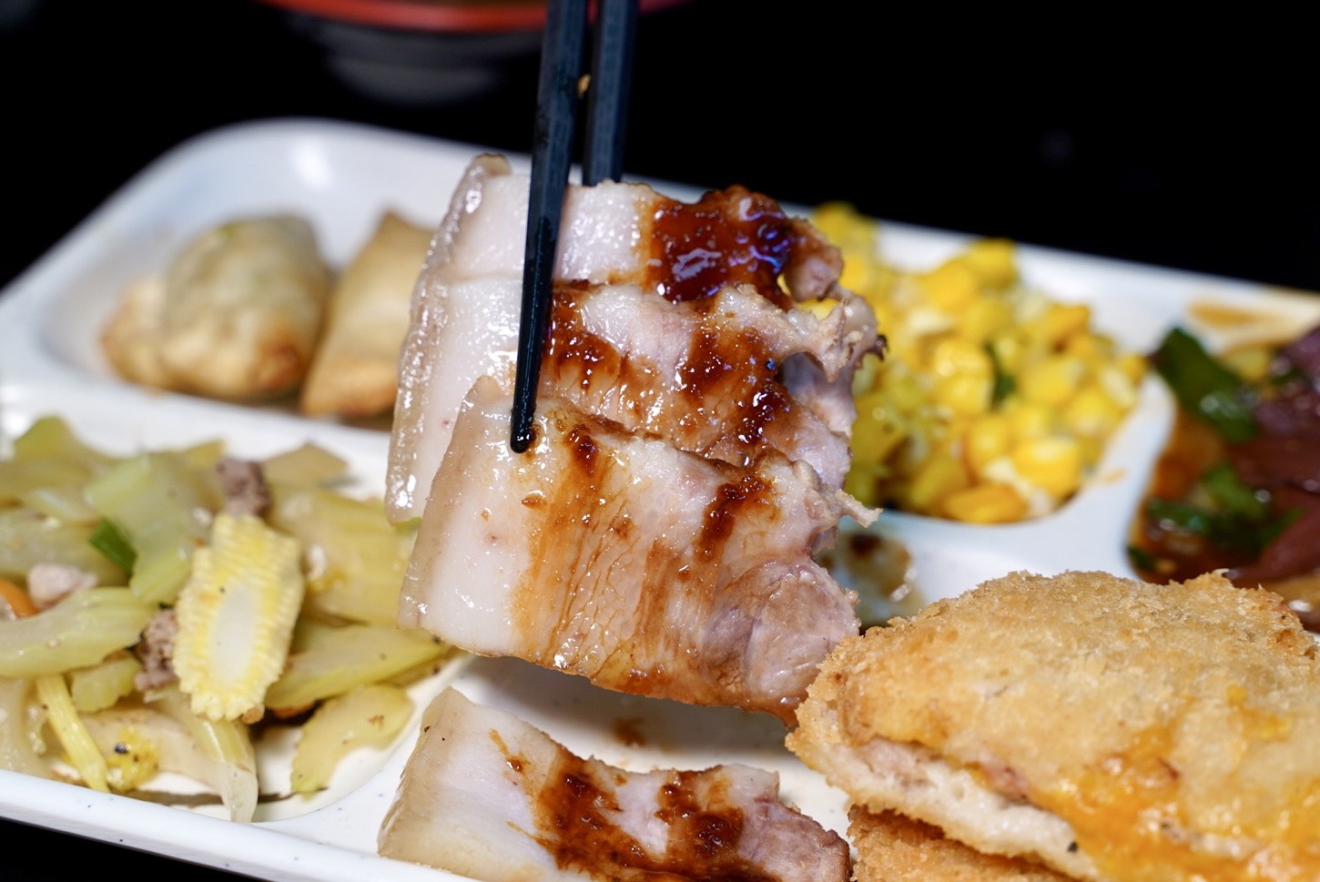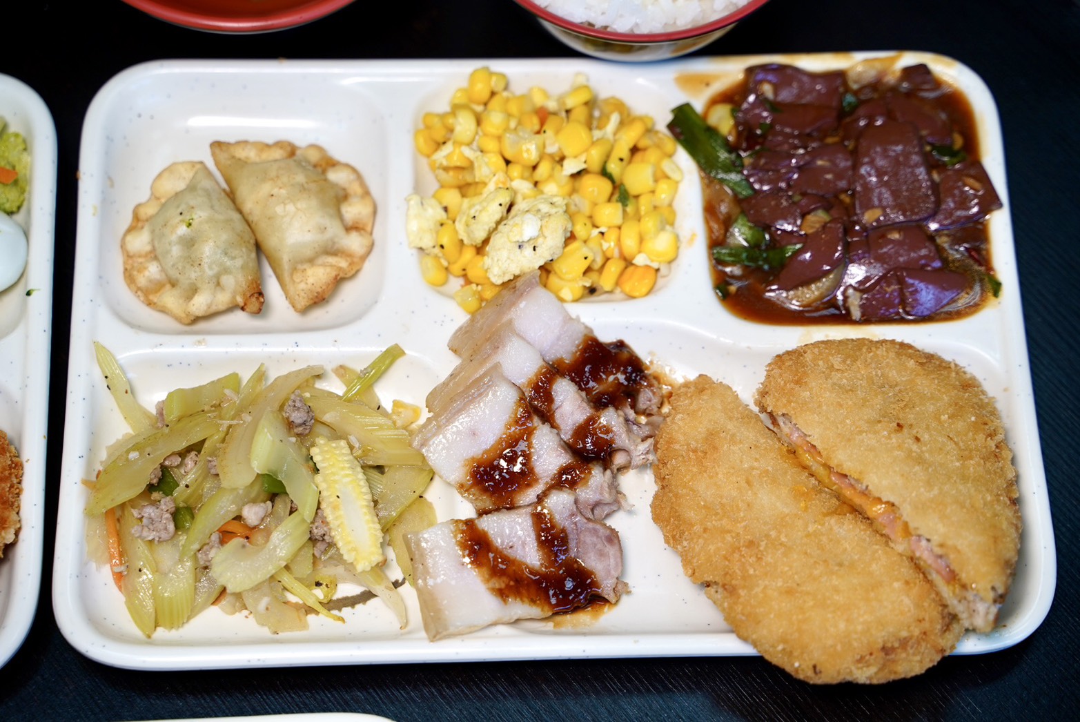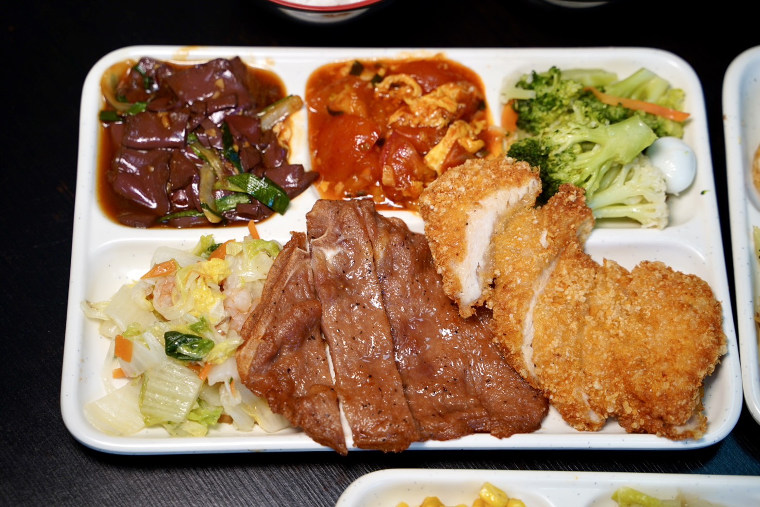他們家配菜很有料,炒花椰菜吃得到鳥蛋,滷白菜竟然吃得到蝦仁,番茄炒蛋超下飯,還有炒鴨血、炸水餃等等能選擇,配菜不只份量夠,用料也很大方,重點是選擇多又不無聊。