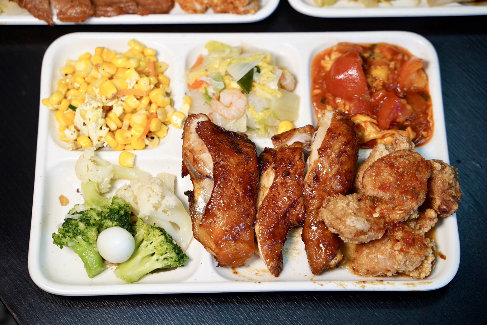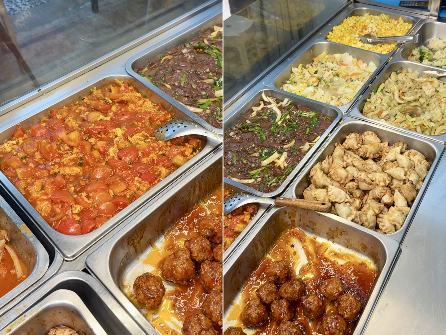 他們家配菜很有料,炒花椰菜吃得到鳥蛋,滷白菜竟然吃得到蝦仁,番茄炒蛋超下飯,還有炒鴨血、炸水餃等等能選擇,配菜不只份量夠,用料也很大方,重點是選擇多又不無聊。