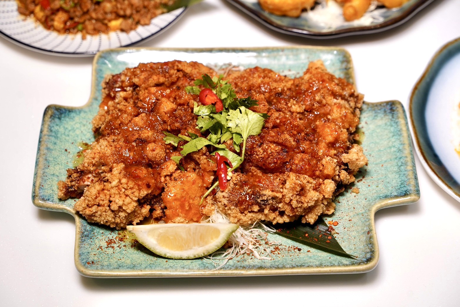 每次來泰椰新泰式料理都必點這盤「椒麻雞肉佐泰式醬」,一上桌香氣就撲鼻而來!直接給你兩大塊去骨雞腿雞肉,份量超有誠意!外皮炸至金黃酥脆,咬下去那個卡滋聲完全沒再客氣!雞肉醃得超入味,肉質也很鮮嫩多汁,淋上泰式酸辣醬,瞬間把整道菜提升到另一個境界,雖然泰國吃不到泰式椒麻雞,但這盤真的很可以!