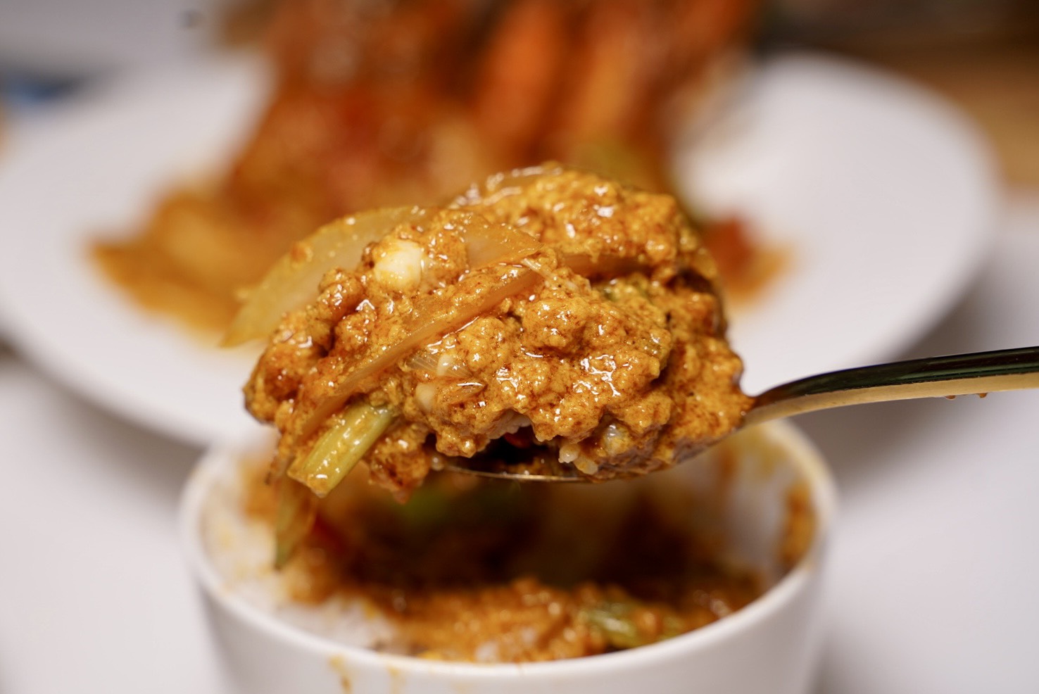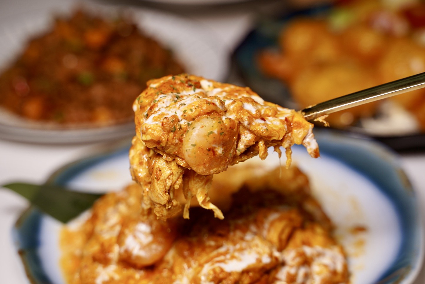 這道「南洋蝦仁滑蛋」跟我在泰國吃到的味道一樣,紅咖哩融合椰奶香氣,蝦子新鮮又Q彈,滑蛋嫩到不行,每一口都是濃郁鹹香,真的忍不住一口接一口停不下來~