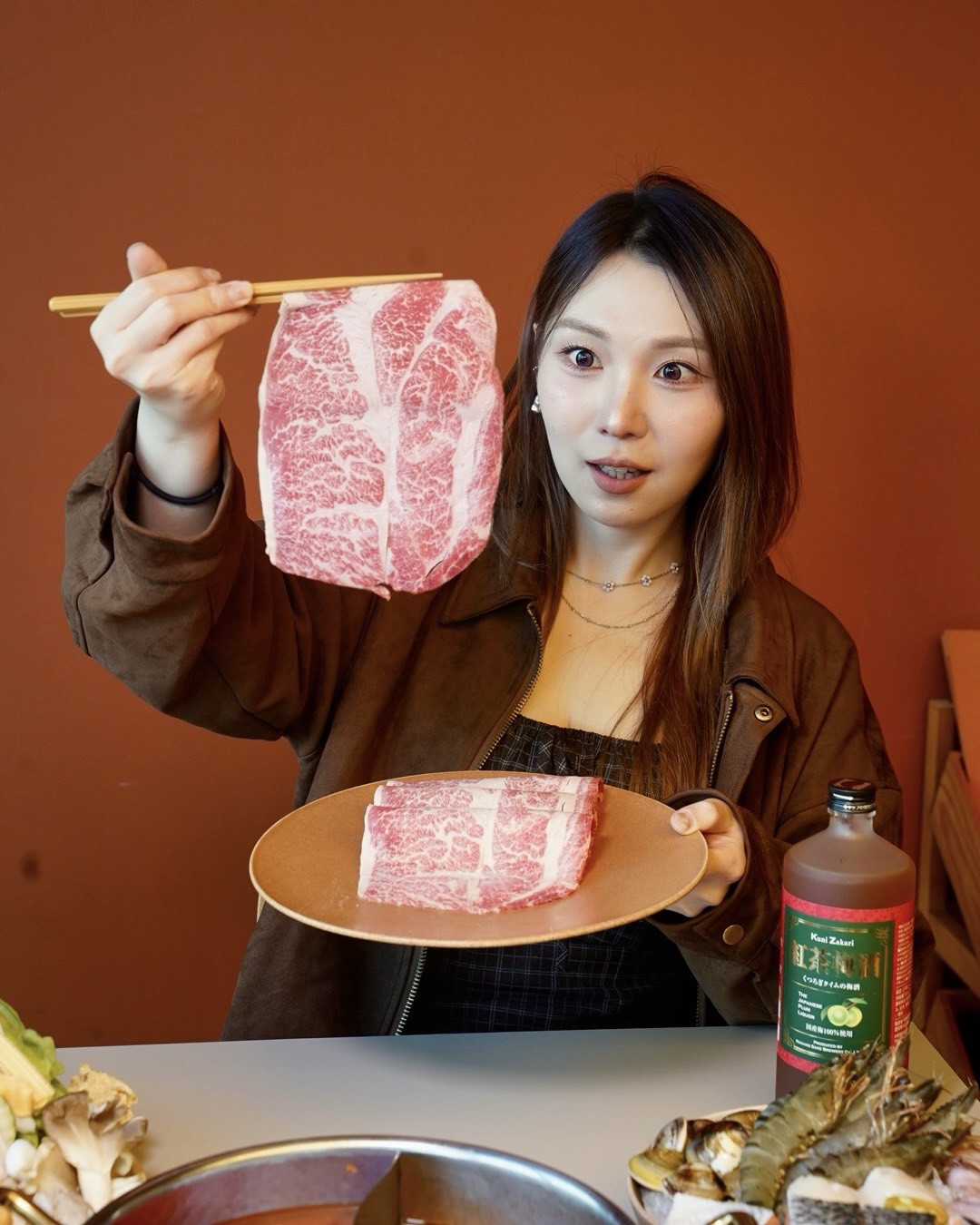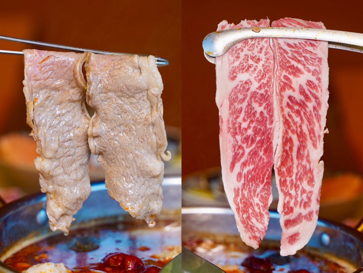「特選翼板牛」肉質鮮紅漂亮,油脂少、肉感紮實,涮幾秒就能吃,牛肉香氣濃郁,越嚼越有味道。