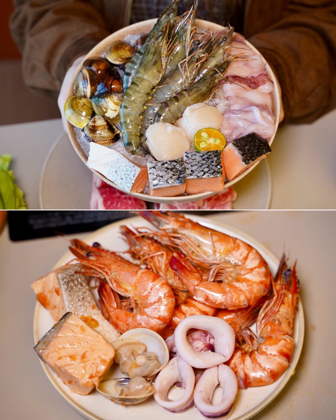 喜歡吃海鮮的朋友,可以點個人海鮮套餐「特選漁師盛合」,包含大草蝦、大干貝、蛤蜊、透抽以及鮭魚,整體吃起來都很新鮮,尤其是大草蝦、透抽,吃起來都是又脆又甜,蛤蜊也是大顆又飽滿。