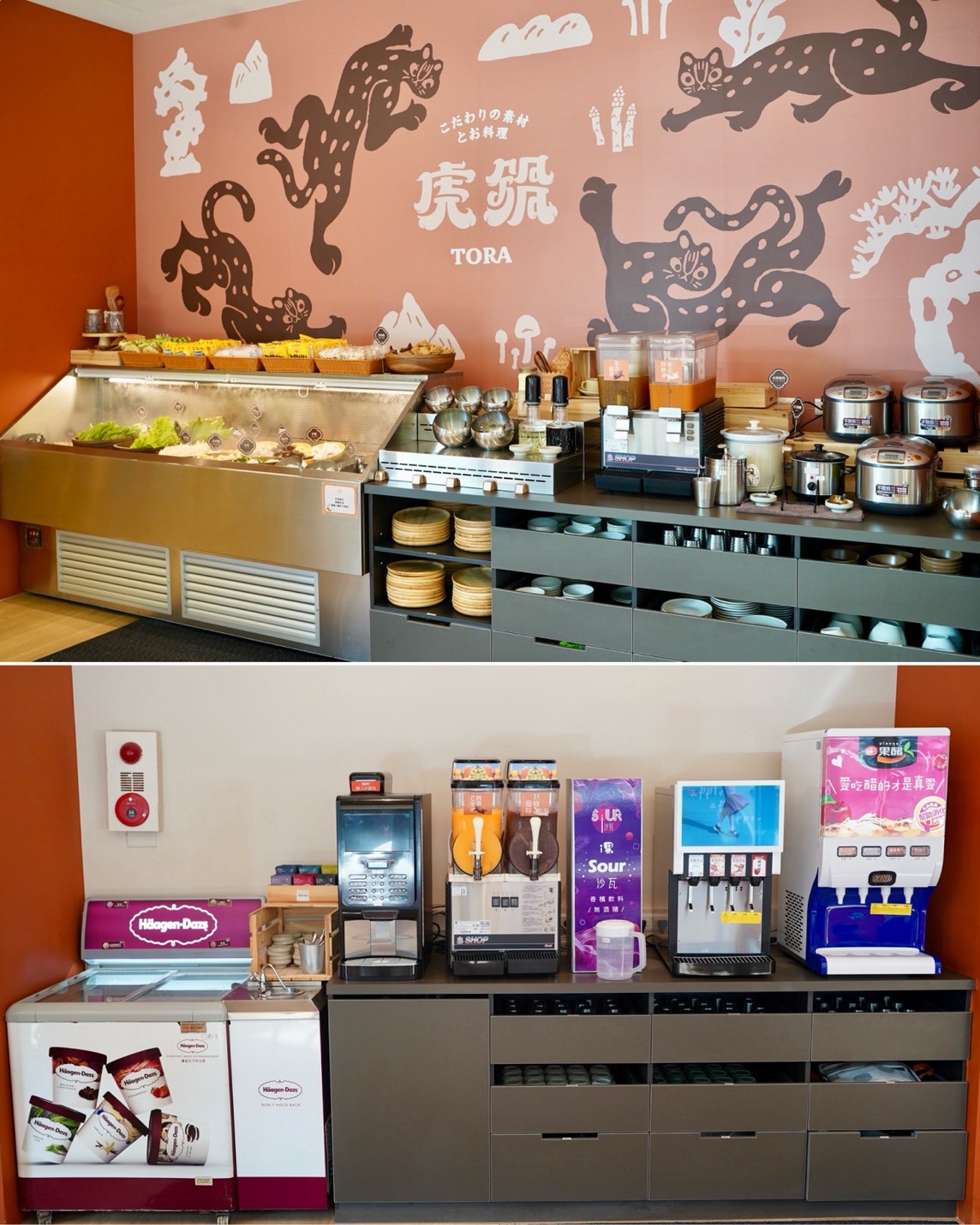 飲料部分超齊全,有氣泡沙瓦機、咖啡機、果醋機等等,更讚的是還有巨峰葡萄冰沙、泰式奶茶,整個超加分!