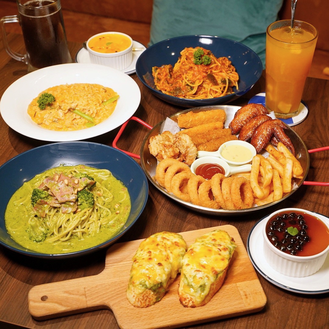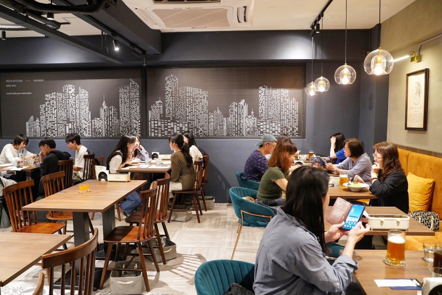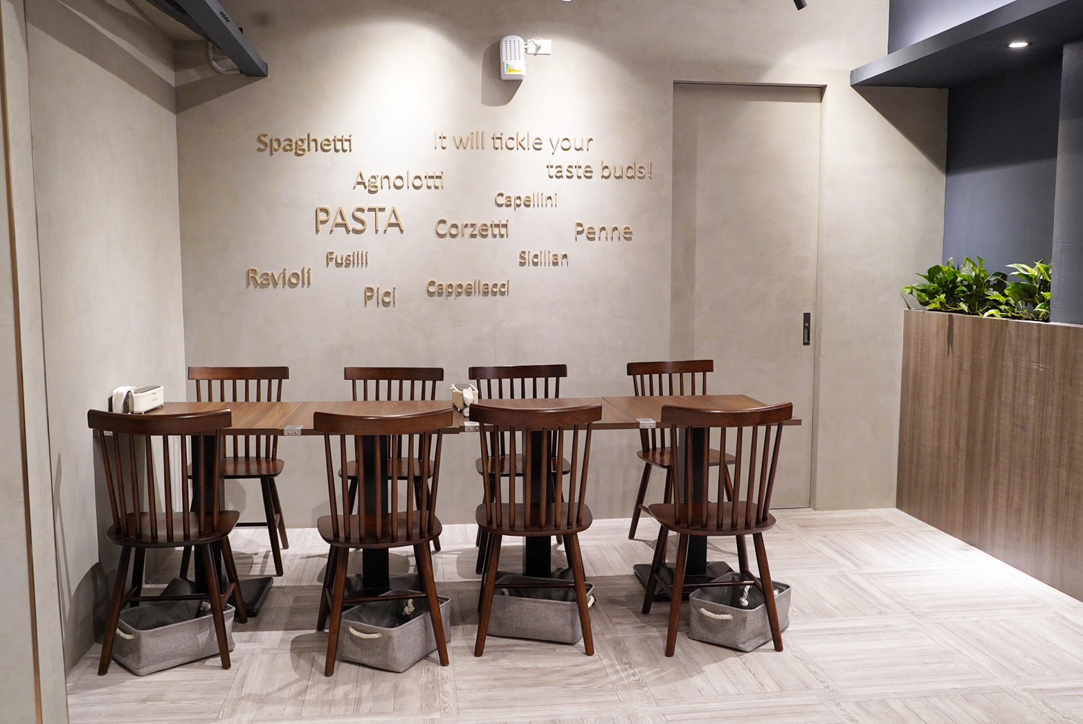 走進店裡是兩層樓的用餐空間,裝潢真的美到不像是間平價義大利麵店,用餐氛圍真的很讚!內用座位頗多,不管是情侶約會或者多人用餐聚會,這裡都很適合。