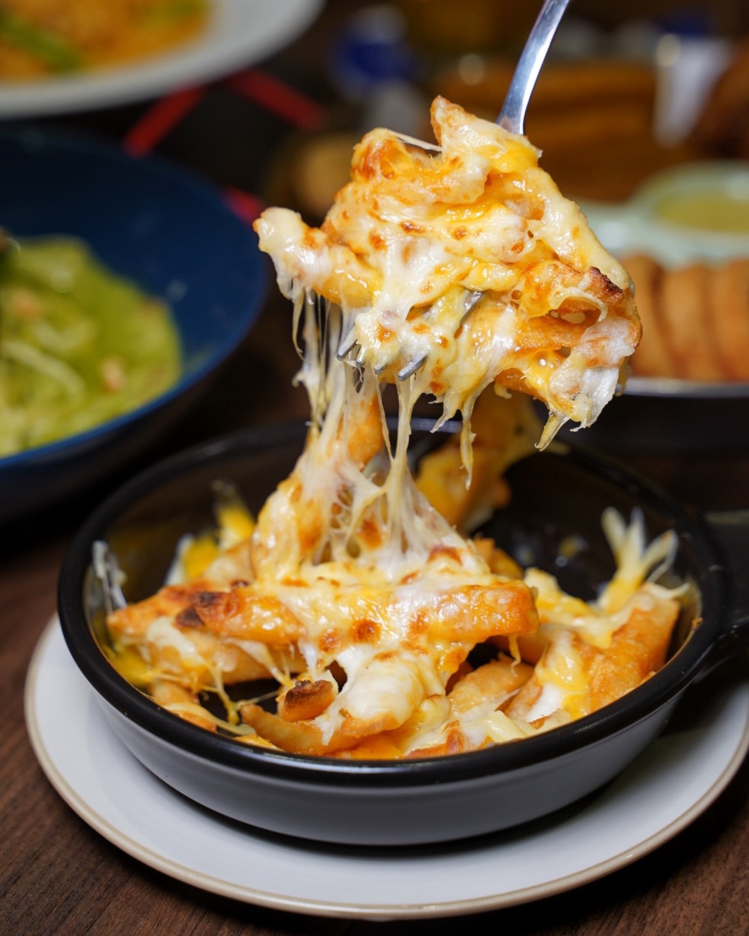 薯條控必點「焗烤黃金薯條」,上層撒滿起司下去焗烤,薯條吃起來更酥脆,真的是爽上加爽的組合,減肥的事永遠明天再說!