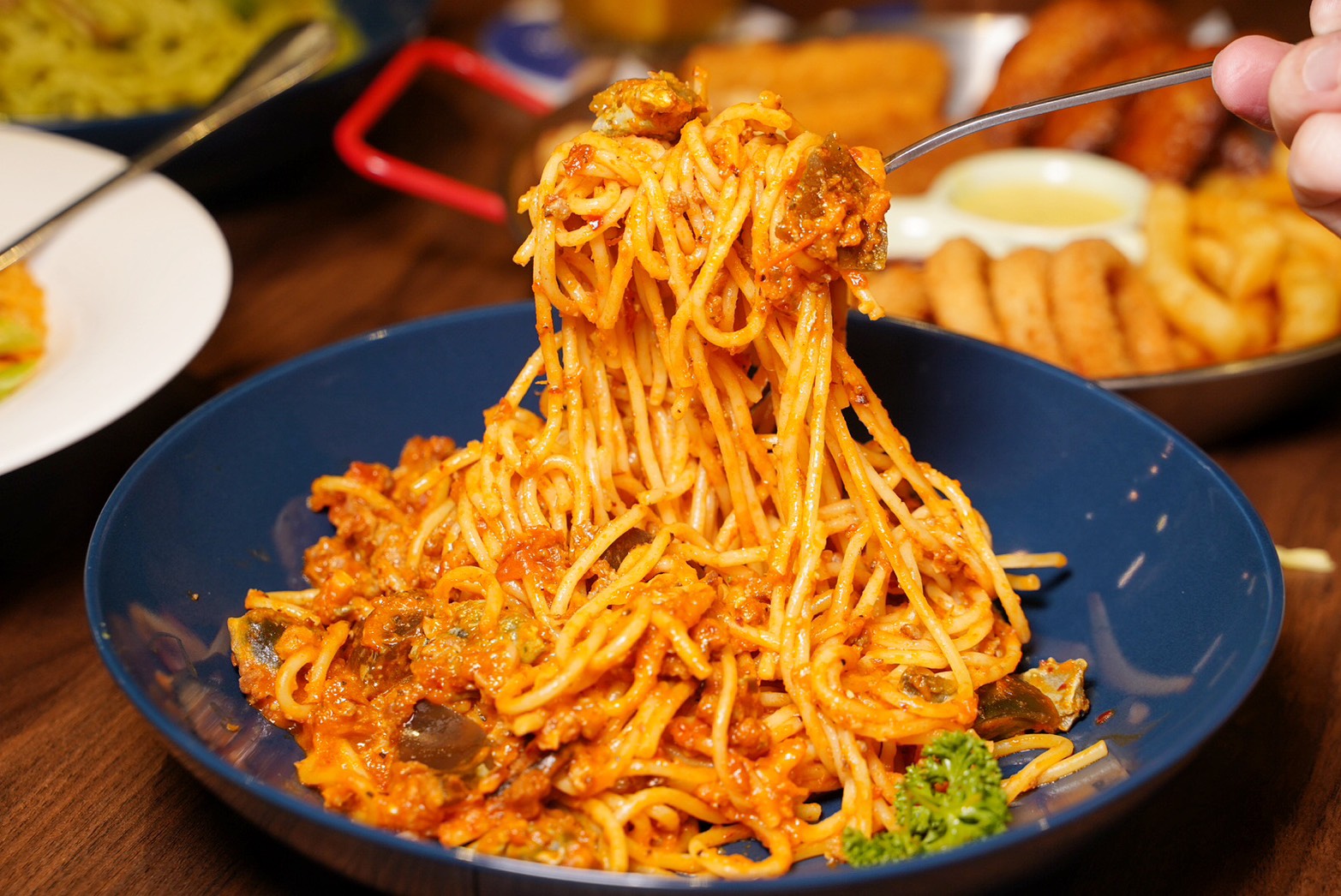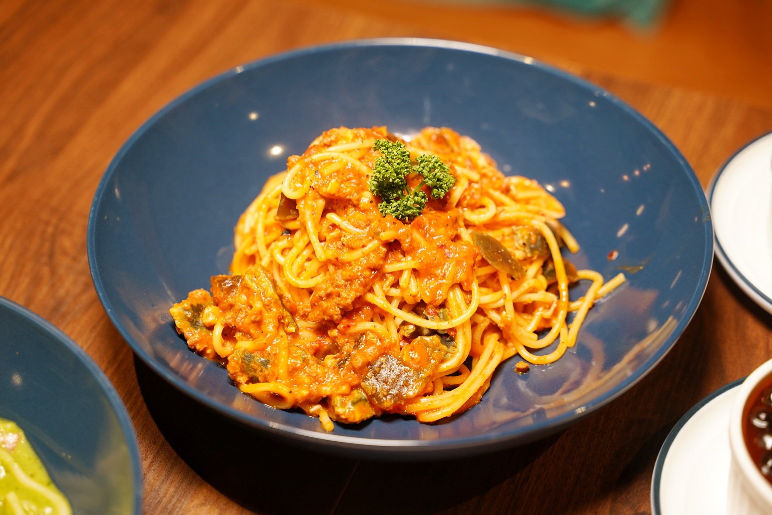 沒想到在義式餐廳也點得到「辣味皮蛋肉醬麵」,皮蛋肉醬搭配彈牙的麵條,吃起來香辣又涮嘴,敢吃辣的朋友推薦你一定要點!