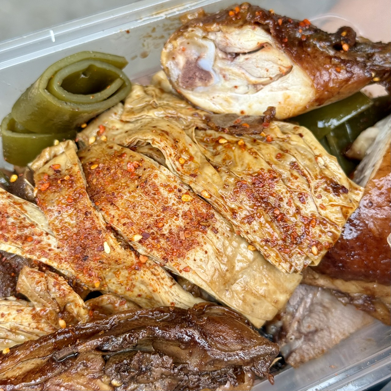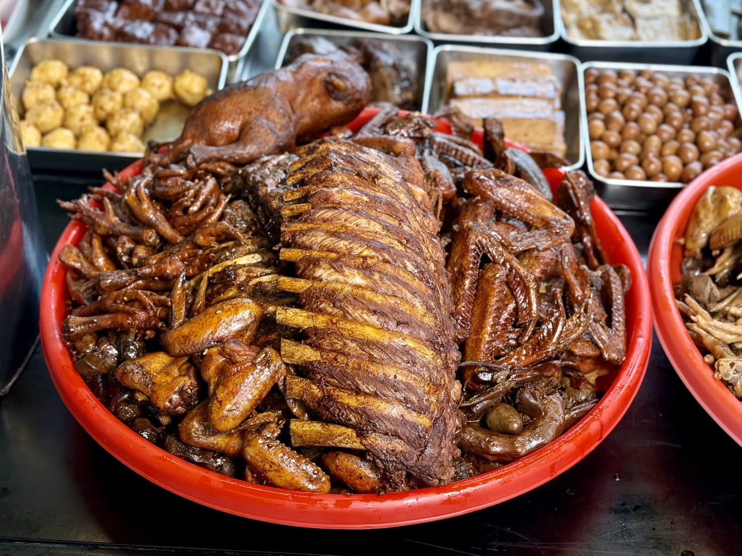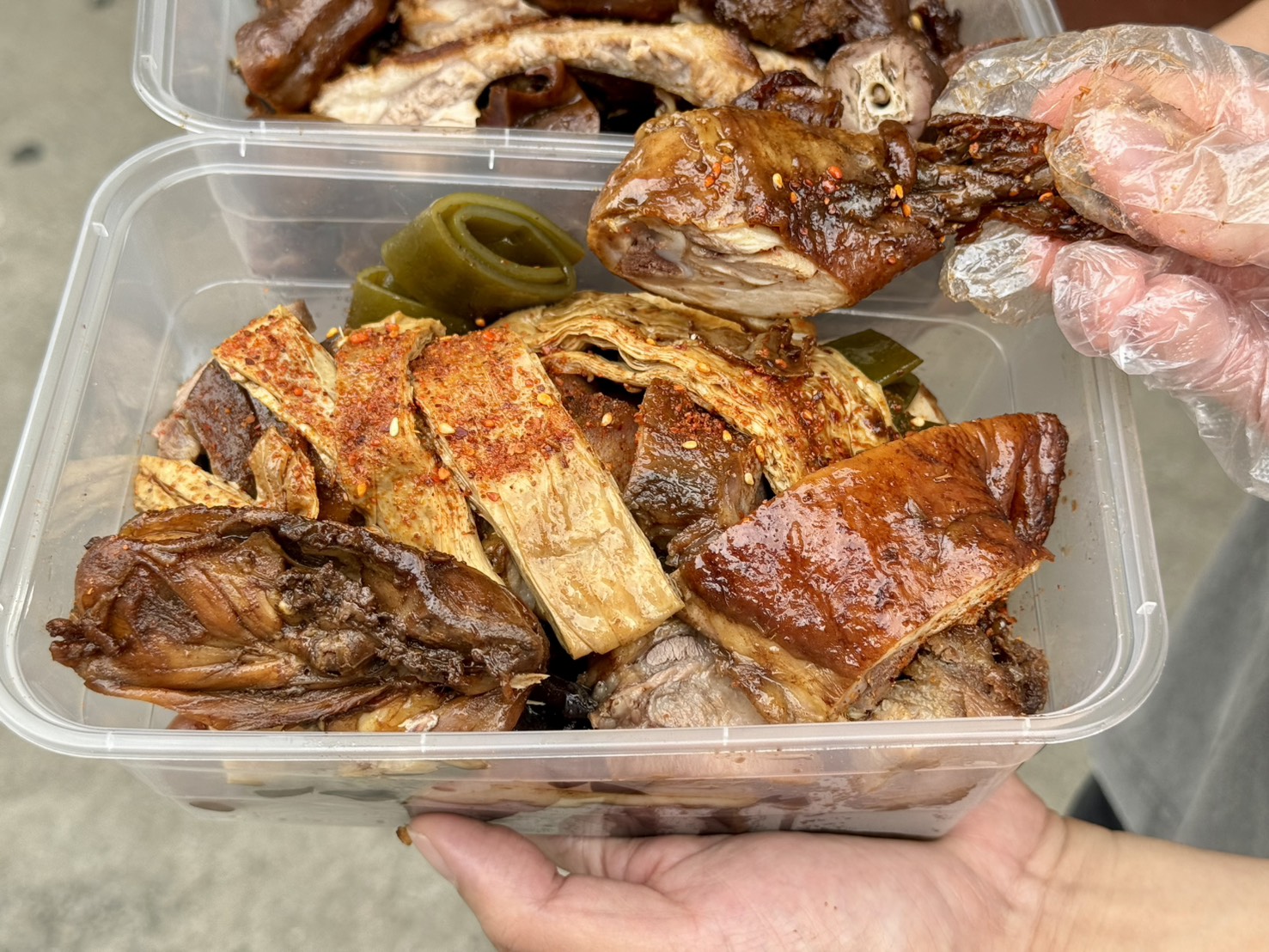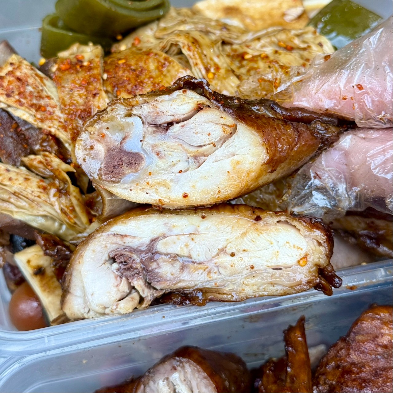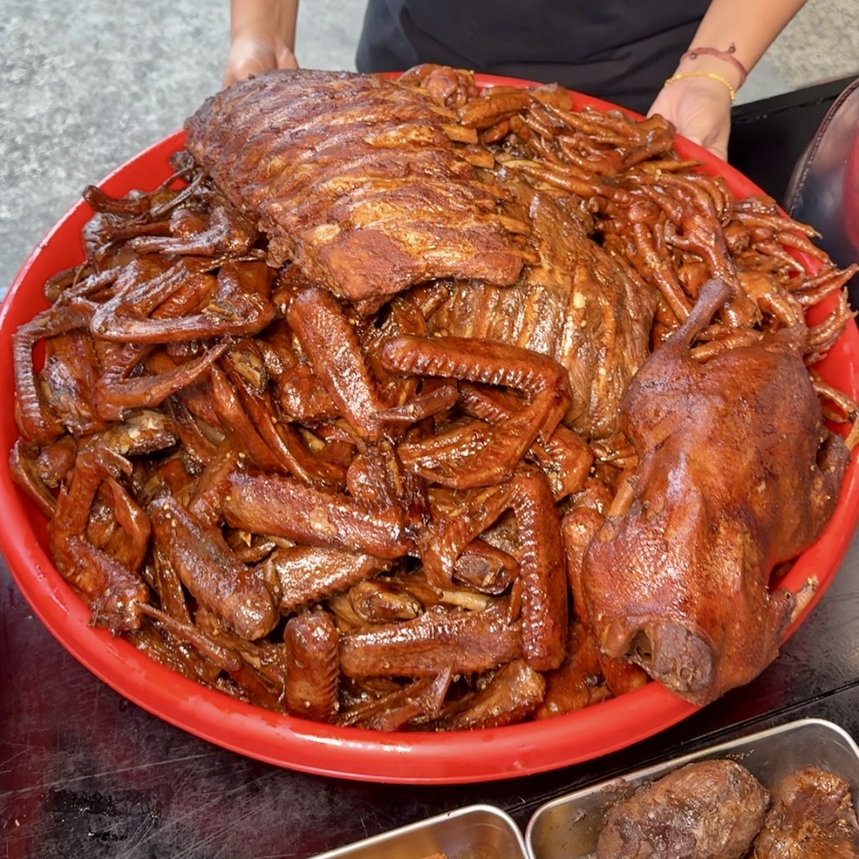 你沒看錯,鴨滷霸真的有賣整隻滷好的櫻桃鴨!吃不了這麼多也別擔心,可以買1/4隻就好,老闆現切,那個油亮感買回家配飯或當下酒菜都超讚。
