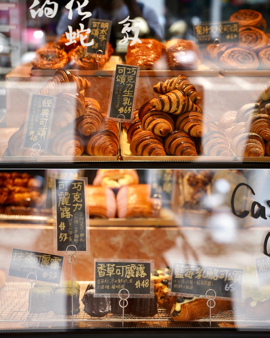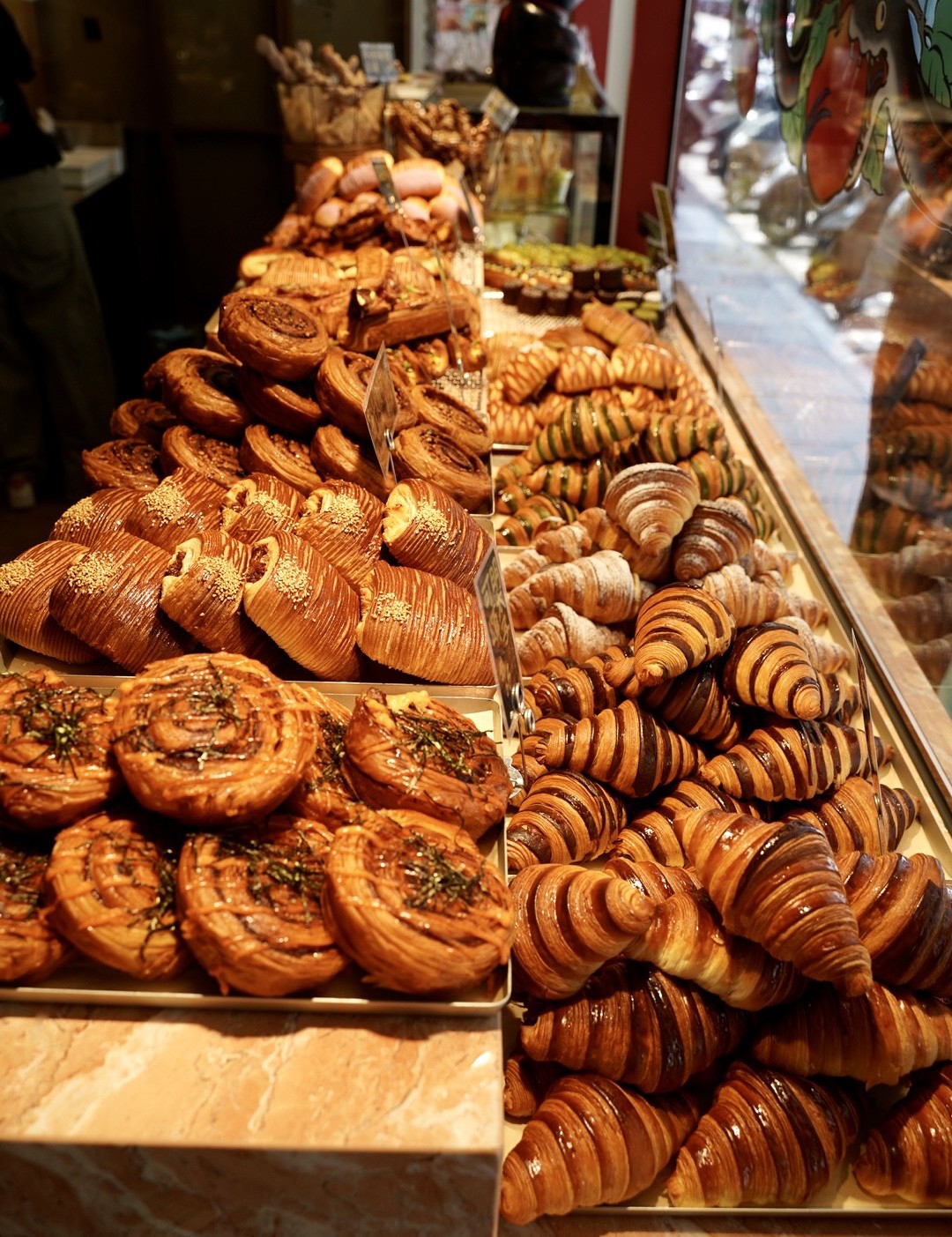 這裡的可頌種類超級多,長條、棒狀、螺旋、棉被造型通通有,每一顆造型都超精美,來到這裡仿佛置身在外國麵包店一樣。