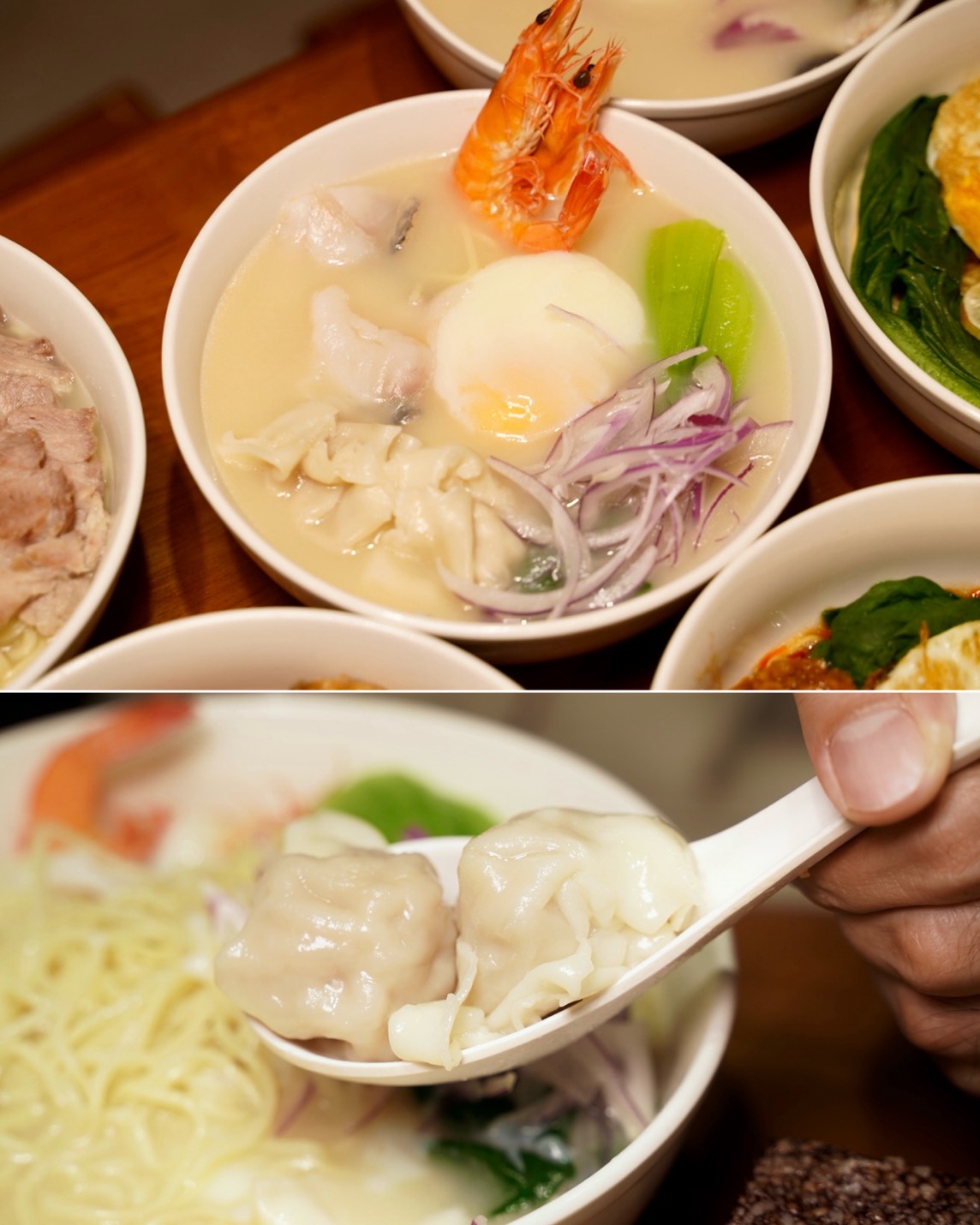 招牌「魚氏湯麵」配料相當豐富,包含水波蛋、蝦子、石斑魚片及餛飩。他們家的湯頭,鹹淡拿捏得剛剛好,喝起來帶點微微黏嘴的口感,原本擔心會有魚腥味,但喝起來卻幾乎沒有。而且石斑魚片口感很彈牙,餛飩個頭大且肉感十足,整碗吃完很滿足。