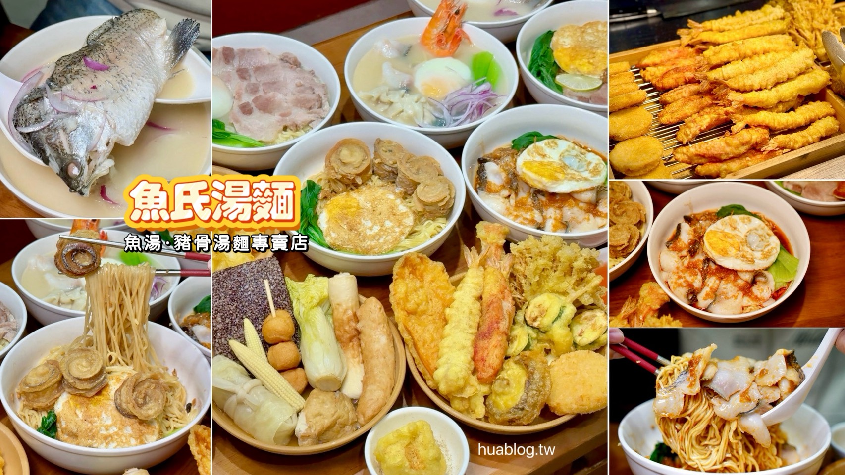 新竹清大商圈新開幕的魚氏湯麵,根本是台版丸龜製麵!一整排炸物、關東煮隨你夾,數十種選擇,真的是應有盡有,而且只要$20元起,完全是小資族福音,難怪深受學生族、家庭客喜愛!但魚氏湯麵其實是少見的魚湯麵專賣店!必點的招牌魚氏湯麵,是用石斑魚下去熬煮三小時以上,乳白色湯頭,入口就是滿滿鮮味與膠質感,沒想到吃碗麵還能順便養顏美容!